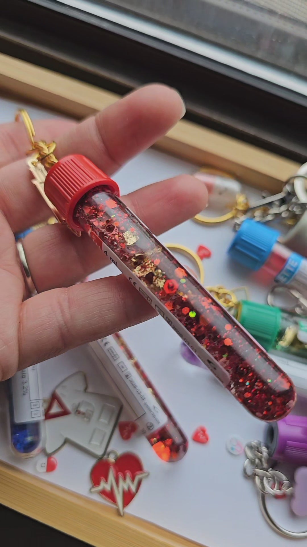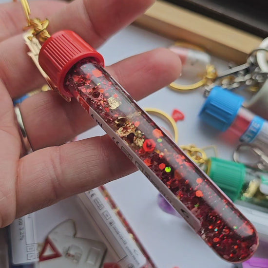 Add a unique touch of science and creativity to your everyday essentials with our handcrafted lab tube keychains. Each piece is carefully designed to resemble real lab tubes, filled with eye-catching elements that make every keychain one of a kind.