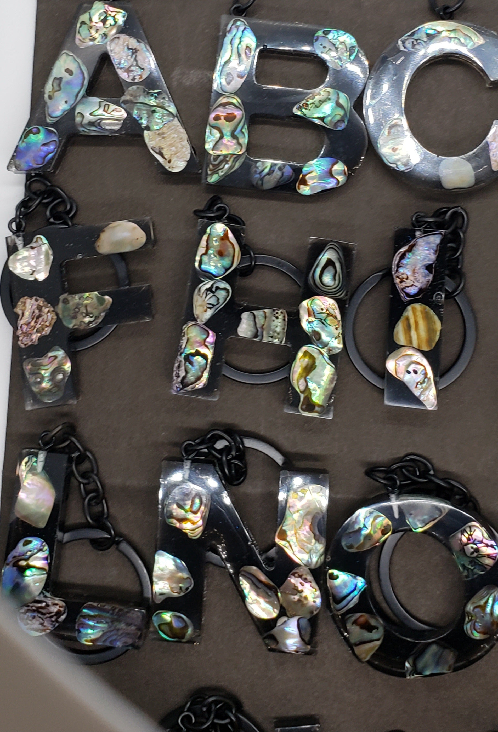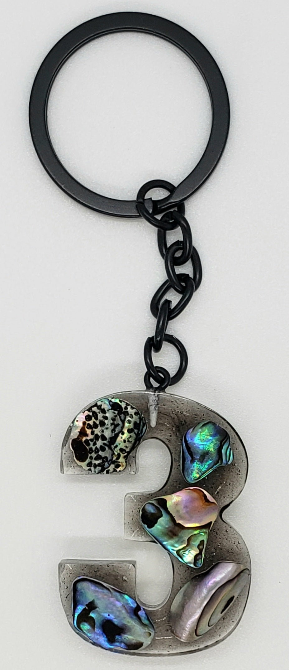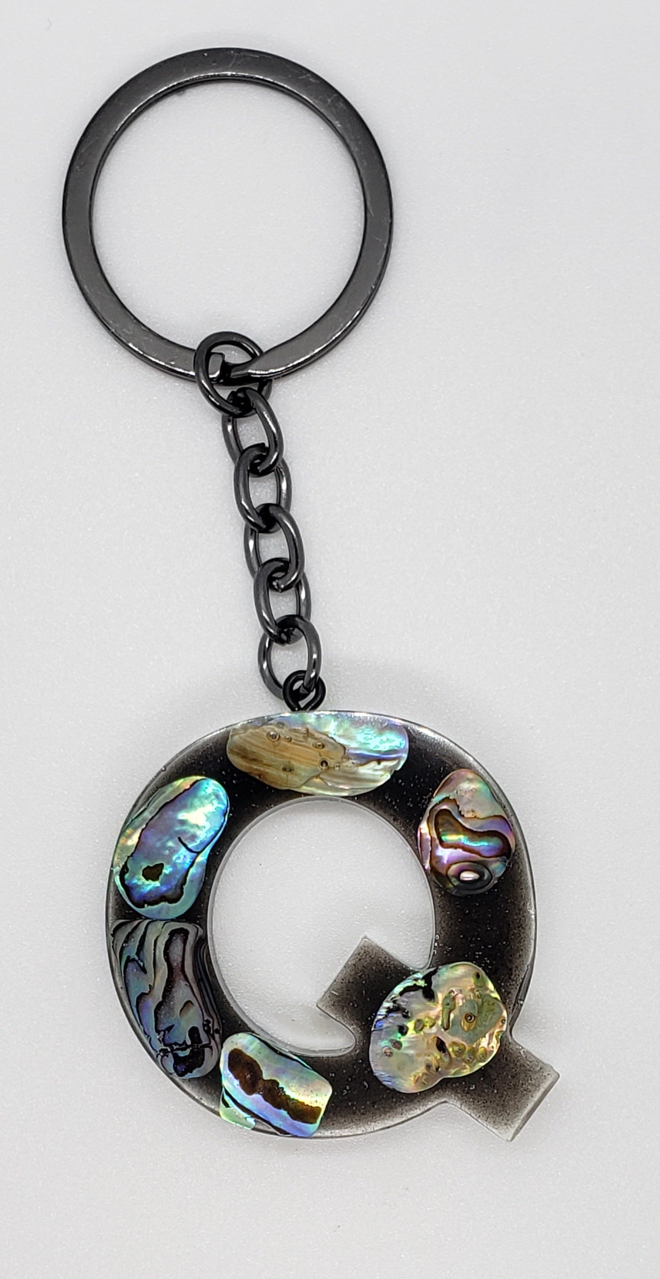 Abalone keychain custom letter initial resin keychain/ Real stones