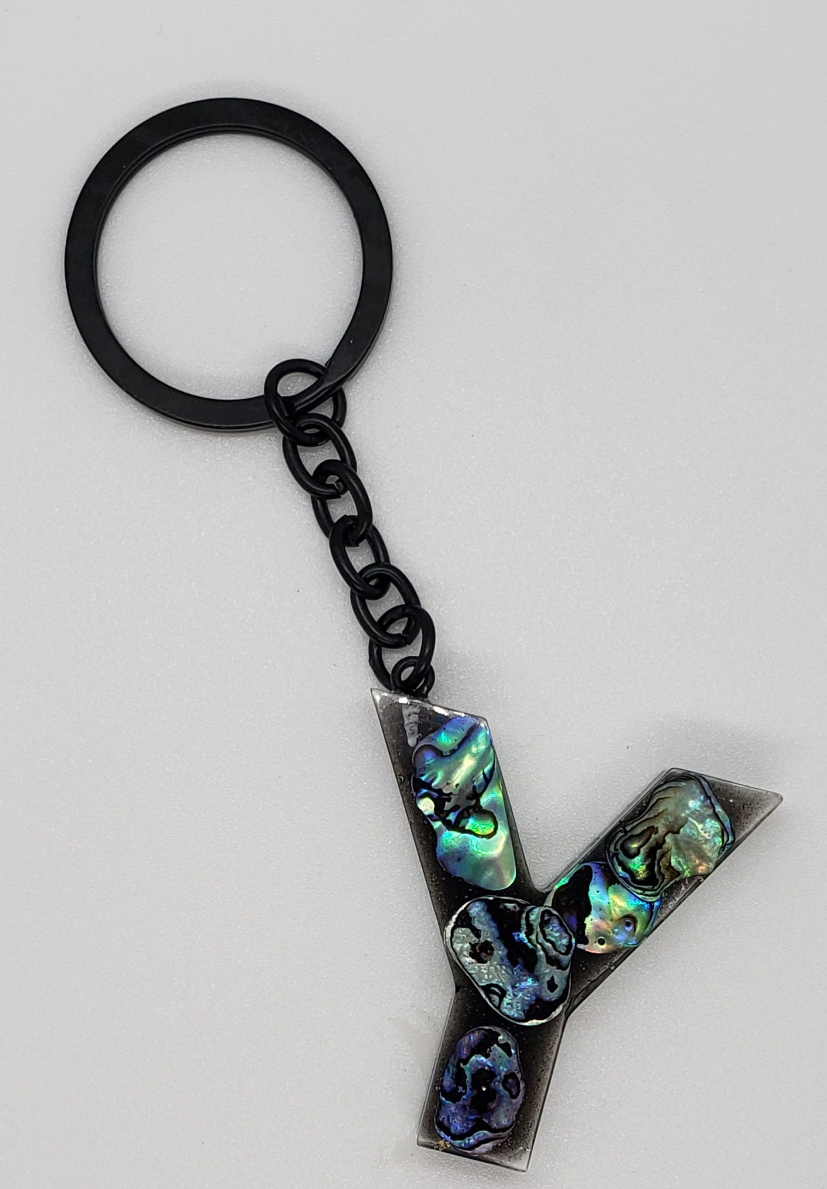 This fashionable Abalone keychain custom letter initial resin keychain will help you stand out from the crowd. Perfect for adding a personal touch to your bag, purse or wallet, it is handmade with real abalone shells and complemented with black hardware. An ideal thoughtful gift for your wife, girlfriend, sister, daughter or mother for graduation, birthday, Mother's Day, Christmas, Valentines Day or wedding anniversary.