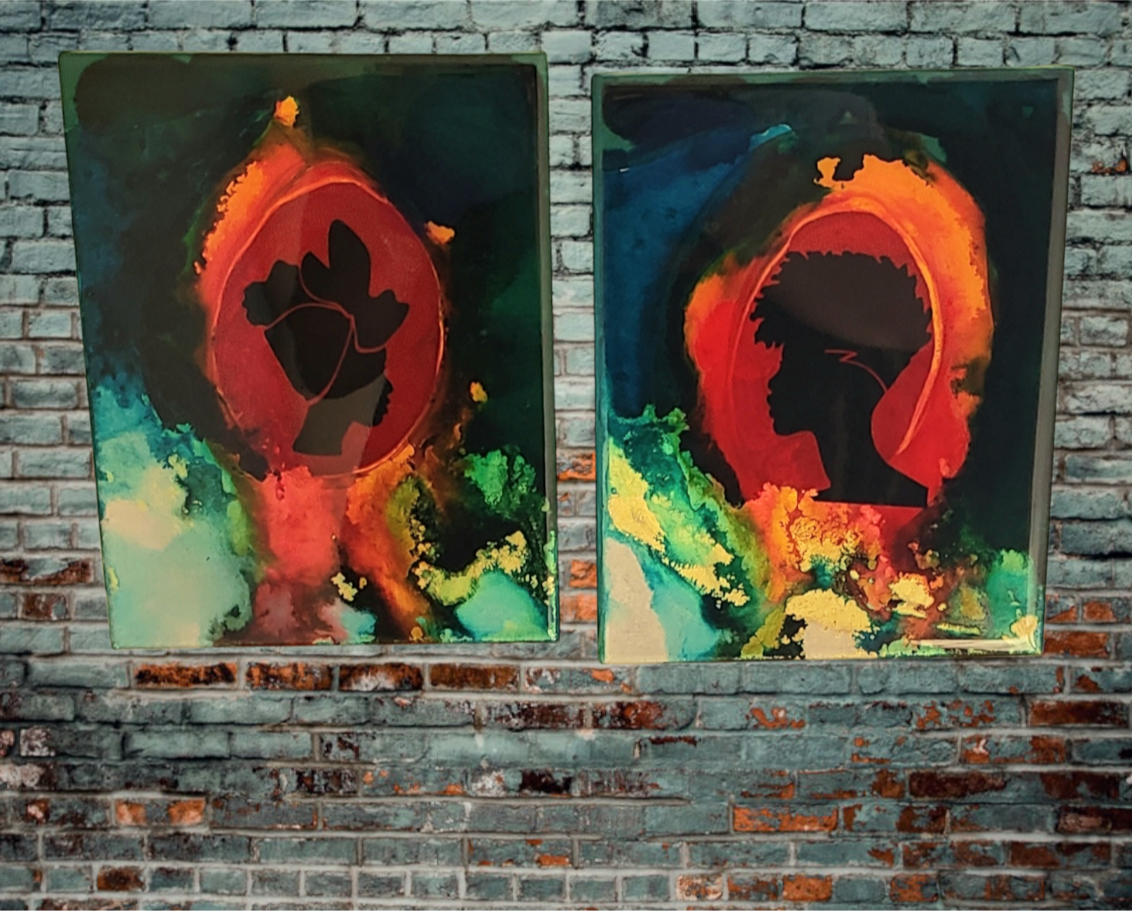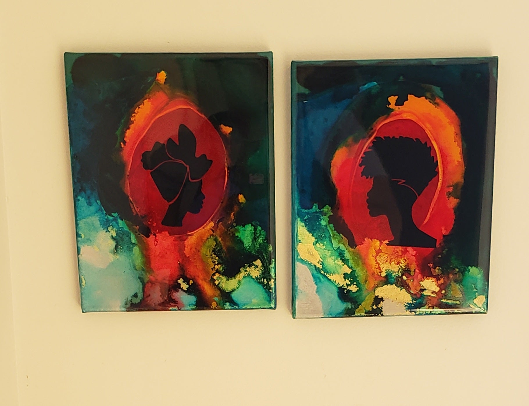 Gorgeous Afrocentric paintings was created with alcohol inks acrylic paints and epoxy resin