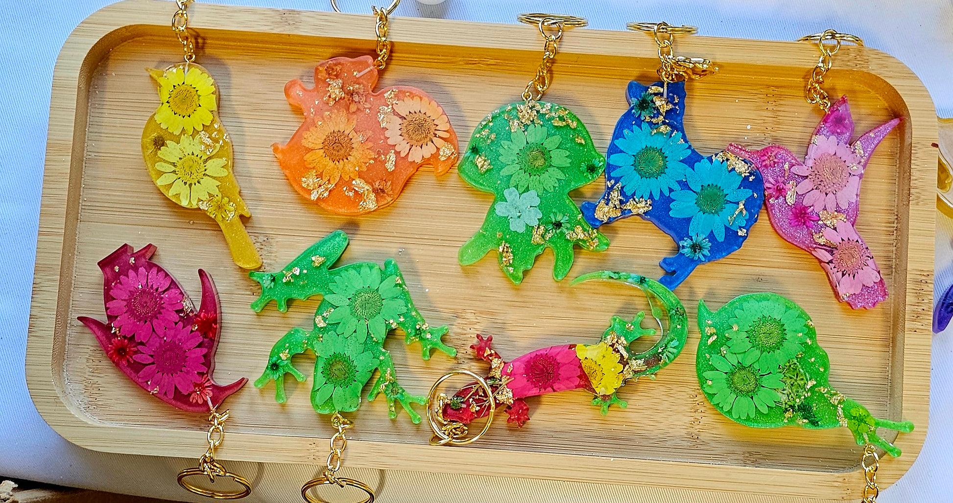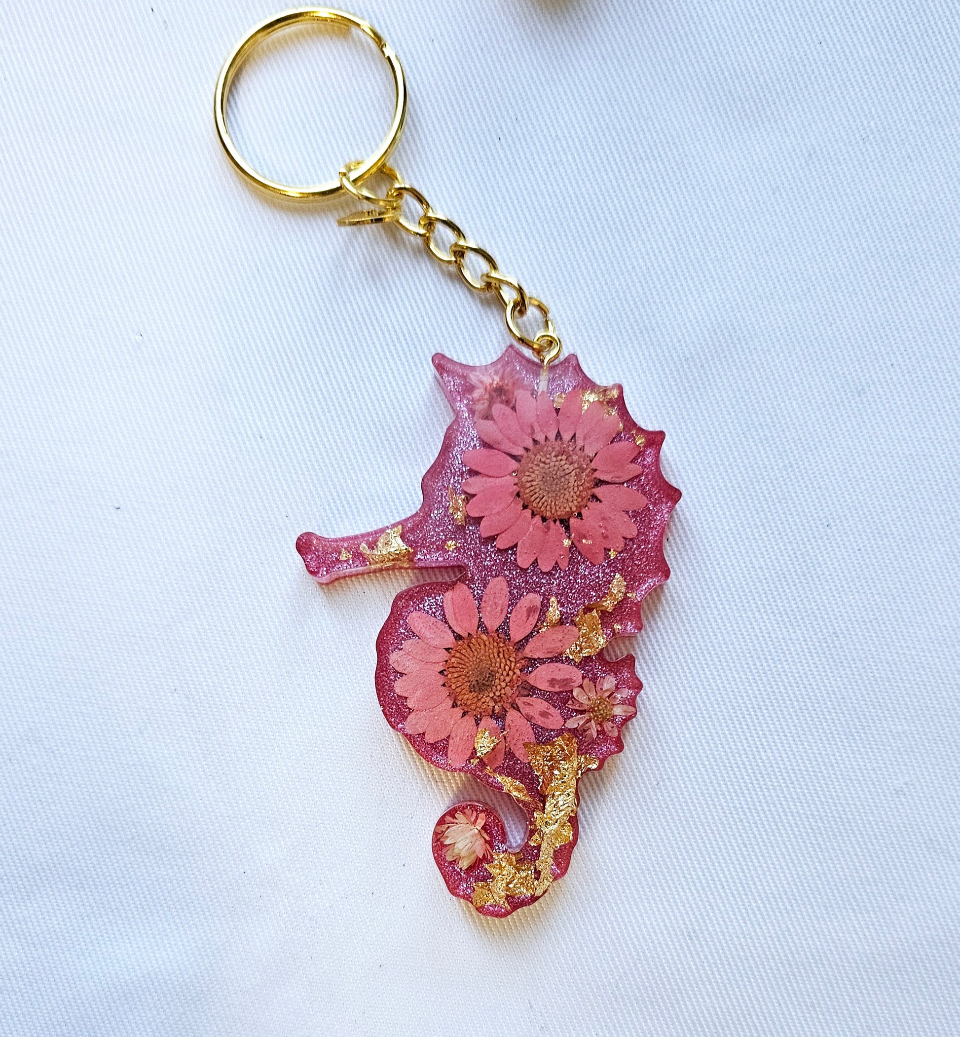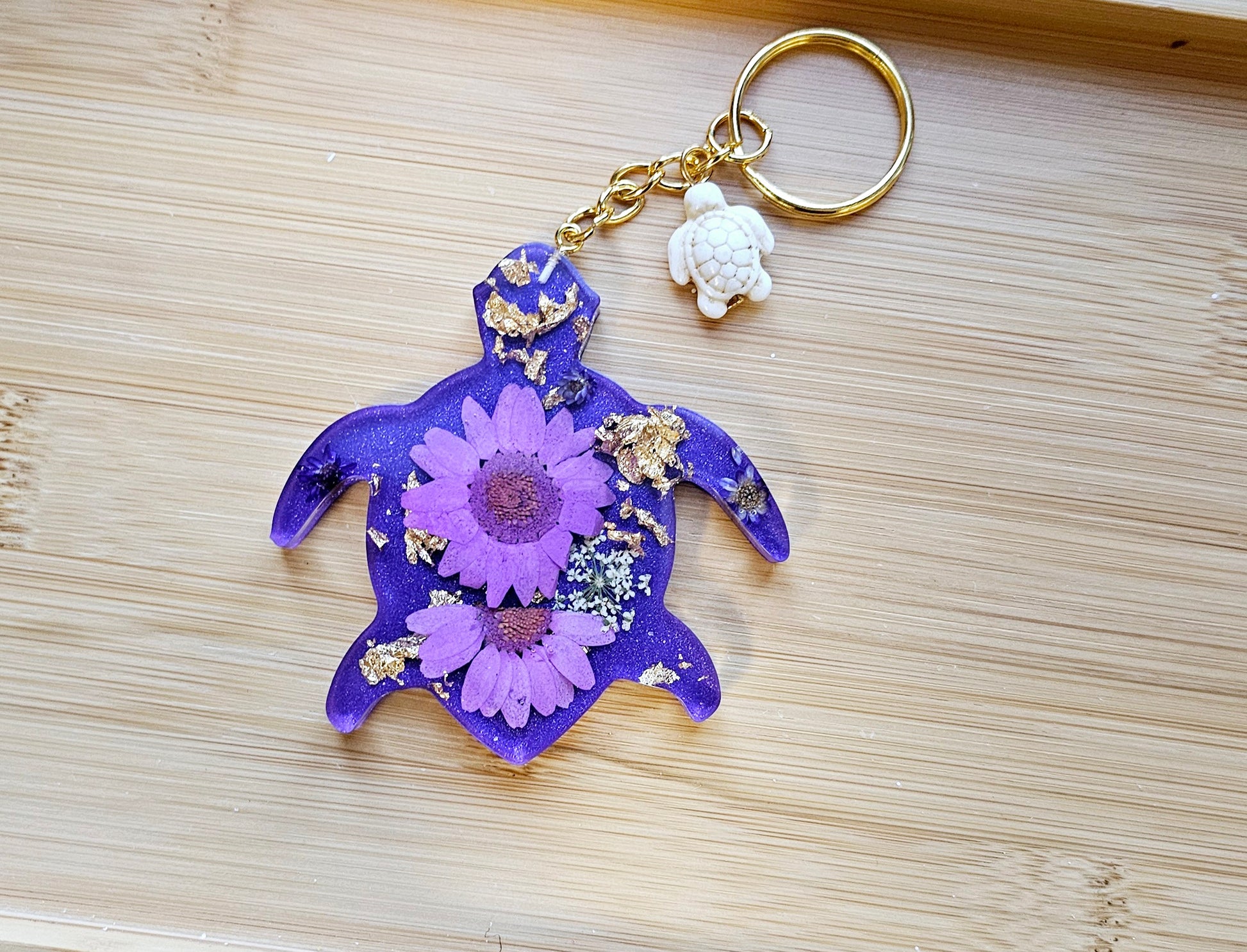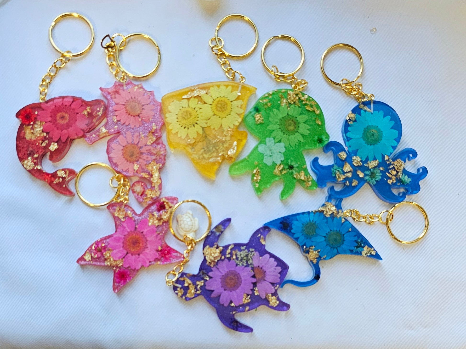 Add a touch of nature to your daily routine with our Animal Floral keychains. These unique keychains are made with real pressed flowers and delicate gold leaf, making them a one-of-a-kind accessory. Brighten up your keys and show off your love for nature with these stunning keychains.