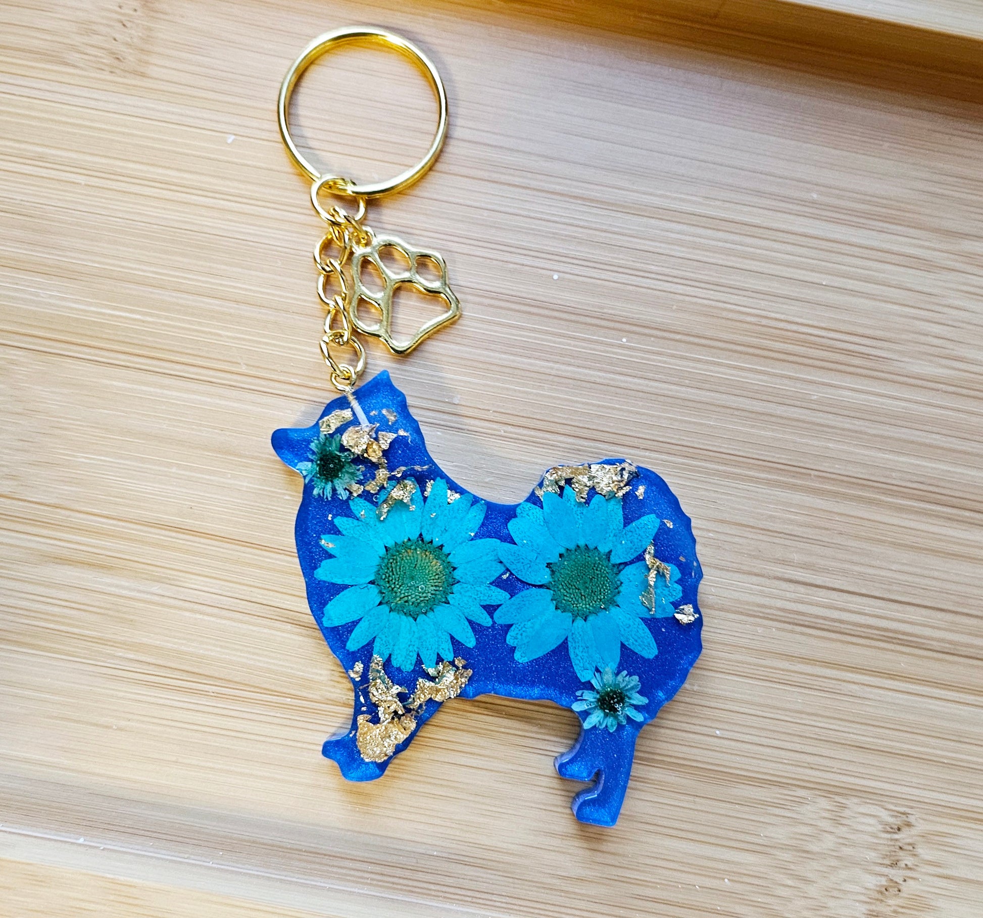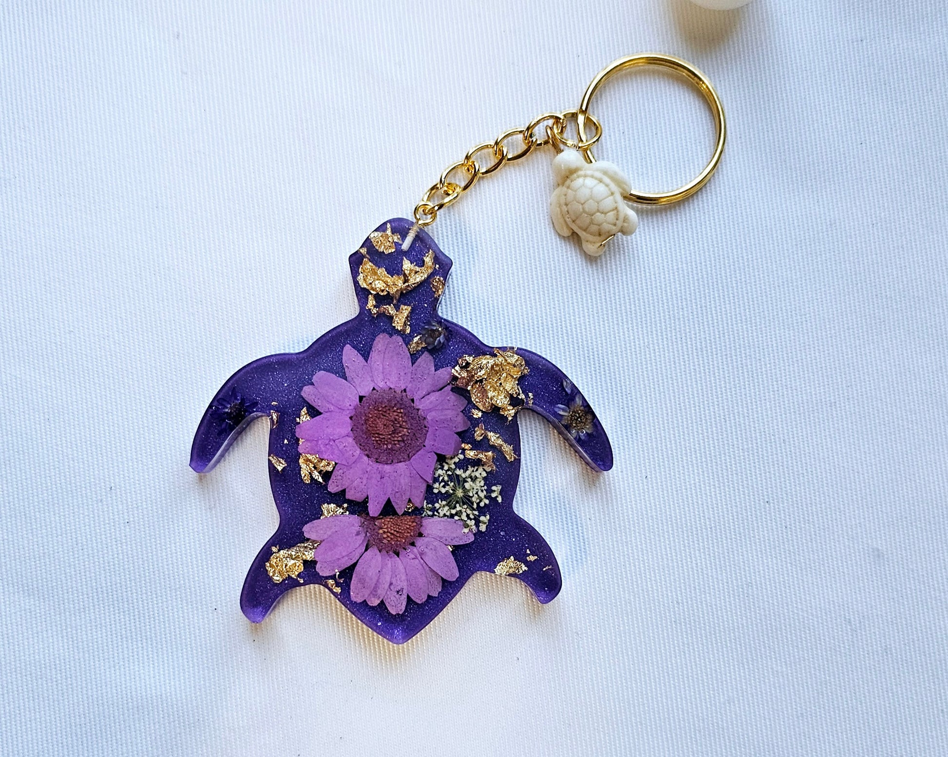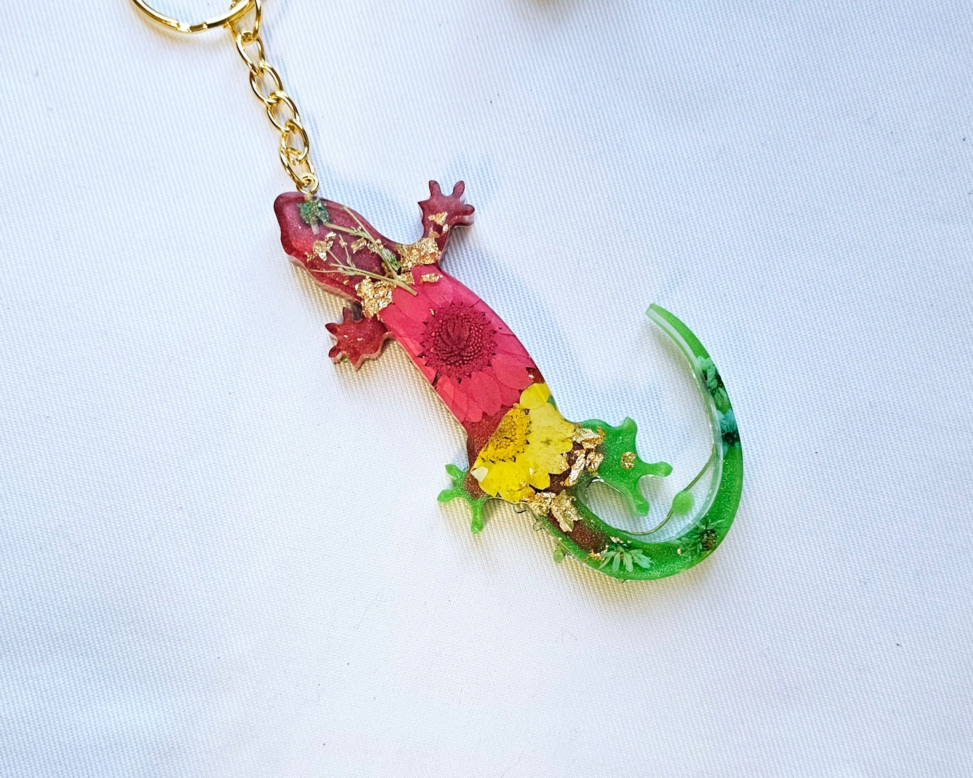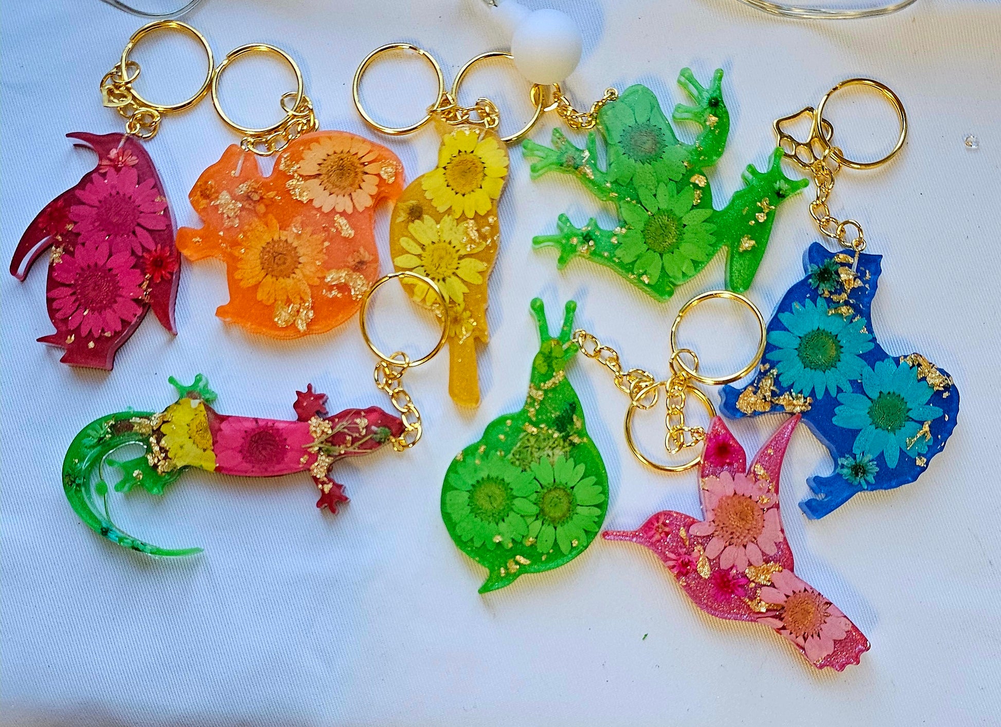 Add a touch of nature to your daily routine with our Animal Floral keychains. These unique keychains are made with real pressed flowers and delicate gold leaf, making them a one-of-a-kind accessory. Brighten up your keys and show off your love for nature with these stunning keychains.