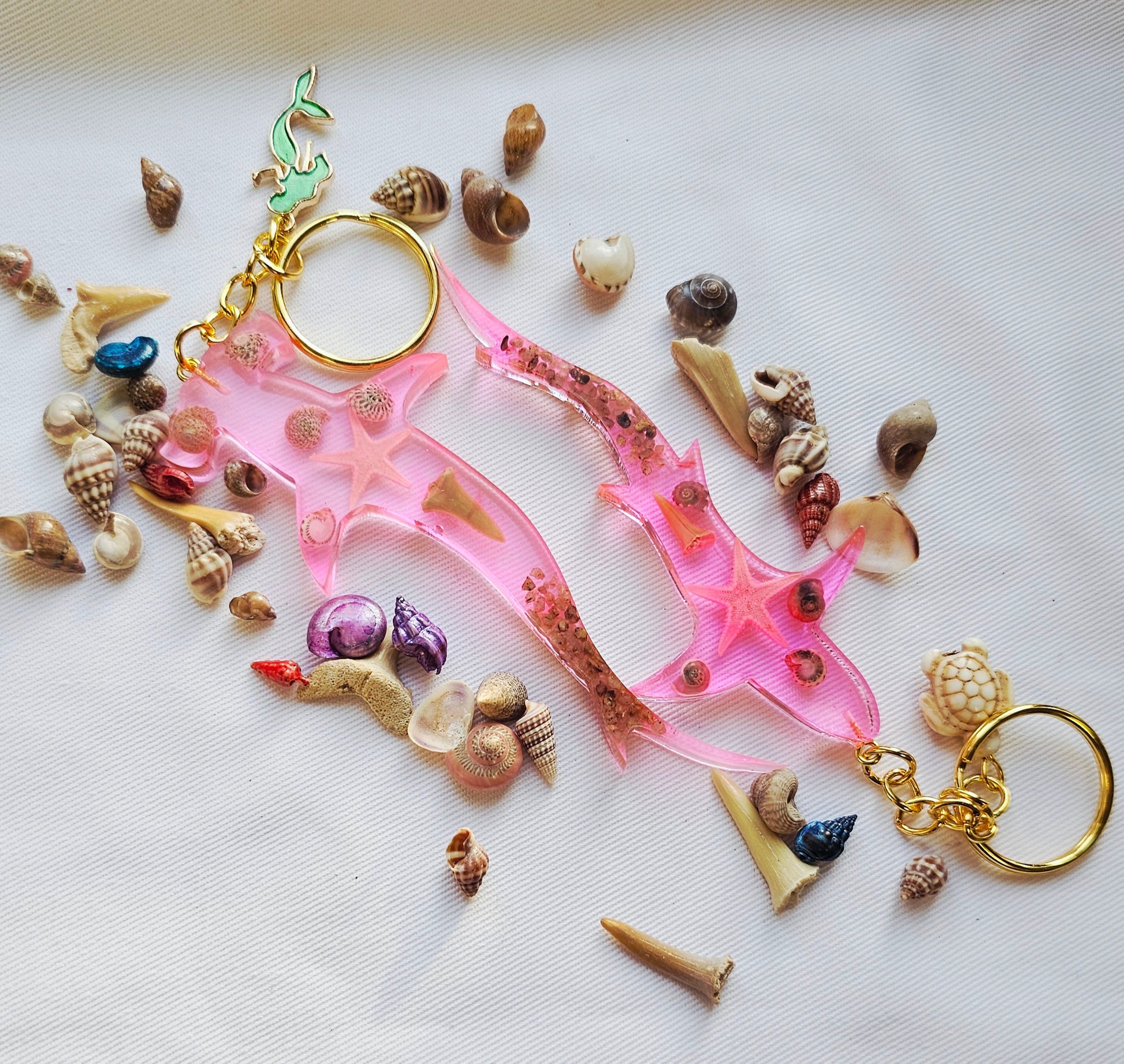 Bring the beauty of the ocean wherever you go! Each keychain is handmade with love and inspired by the sea—featuring designs like mermaid tails, whale tails, sharks, and ocean-in-a-bottle charms. Lightweight yet durable, these keychains are the perfect accessory for your keys, bags, or as a thoughtful gift for ocean lovers.