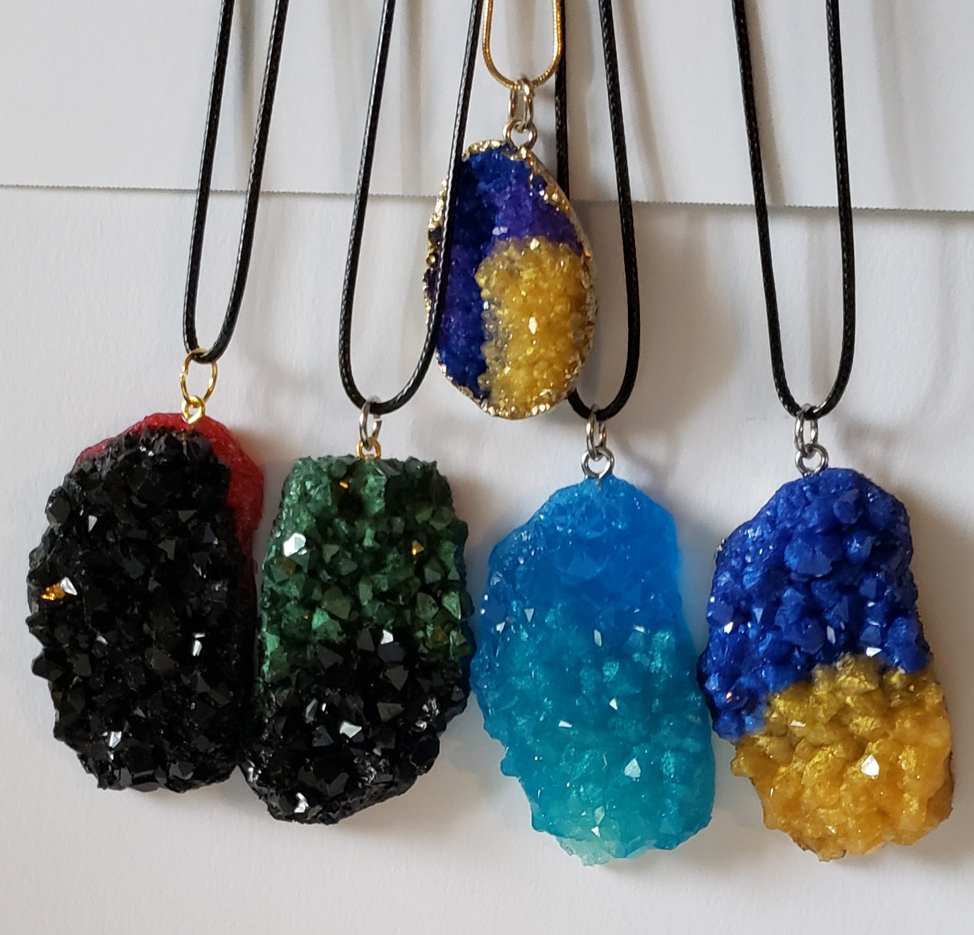 Resin hand made druzy crystal necklace. Note: not real crystals hand made with resin