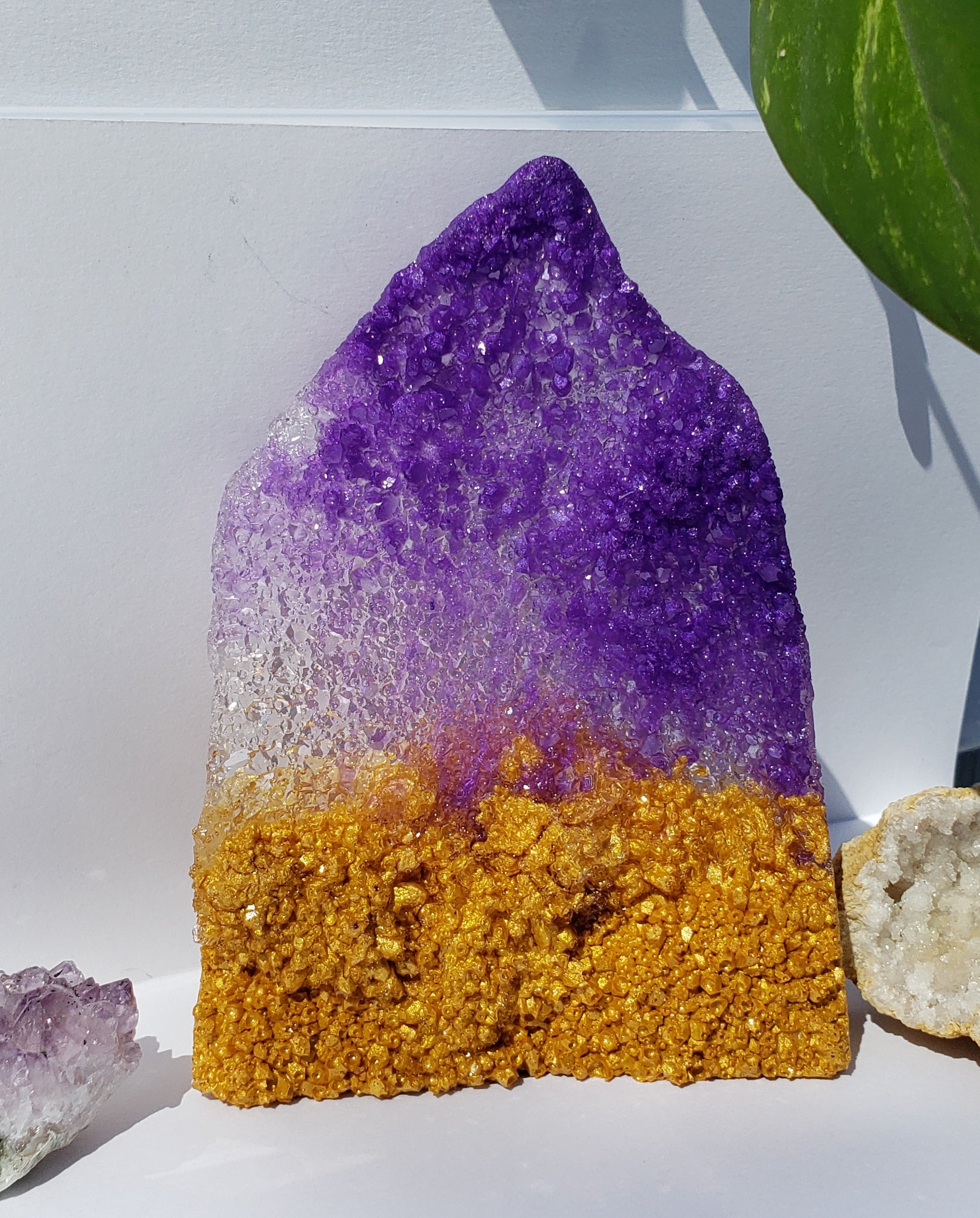 This gorgeous druzy crystal tower is the perfect home décor item. Crafted from quality resin, this beautiful tower will add a touch of sparkle and uniqueness to any room. The druzy crystals bring unique texture, color and elegance to any décor.