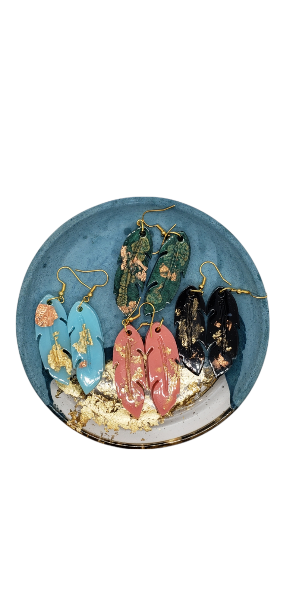 These lightweight earrings are made from epoxy resin and feature beautiful feathers to give you a unique and stylish look. The resin is hypoallergenic and won't irritate your skin, making the Feather Earrings a comfortable accessory for any occasion.