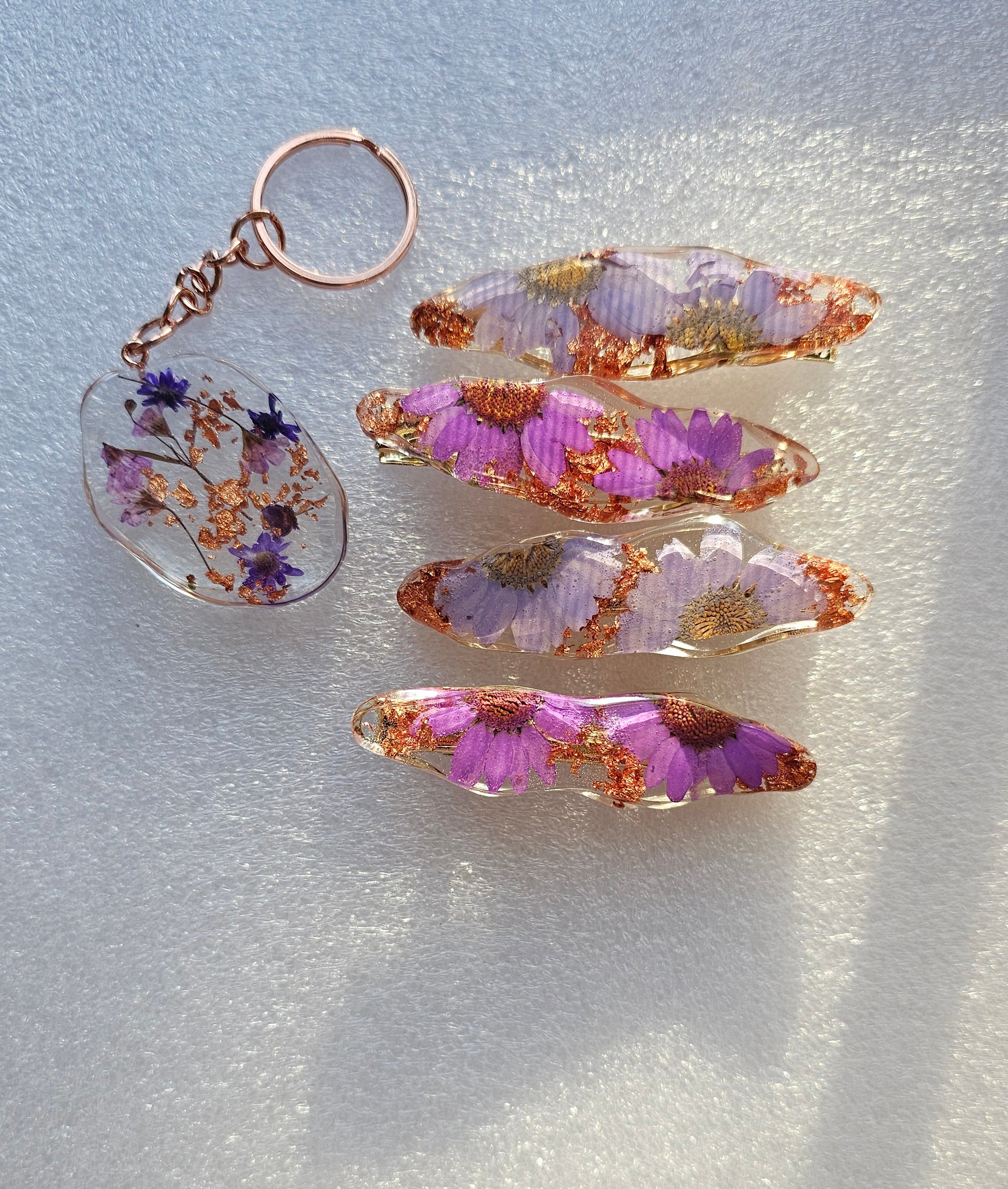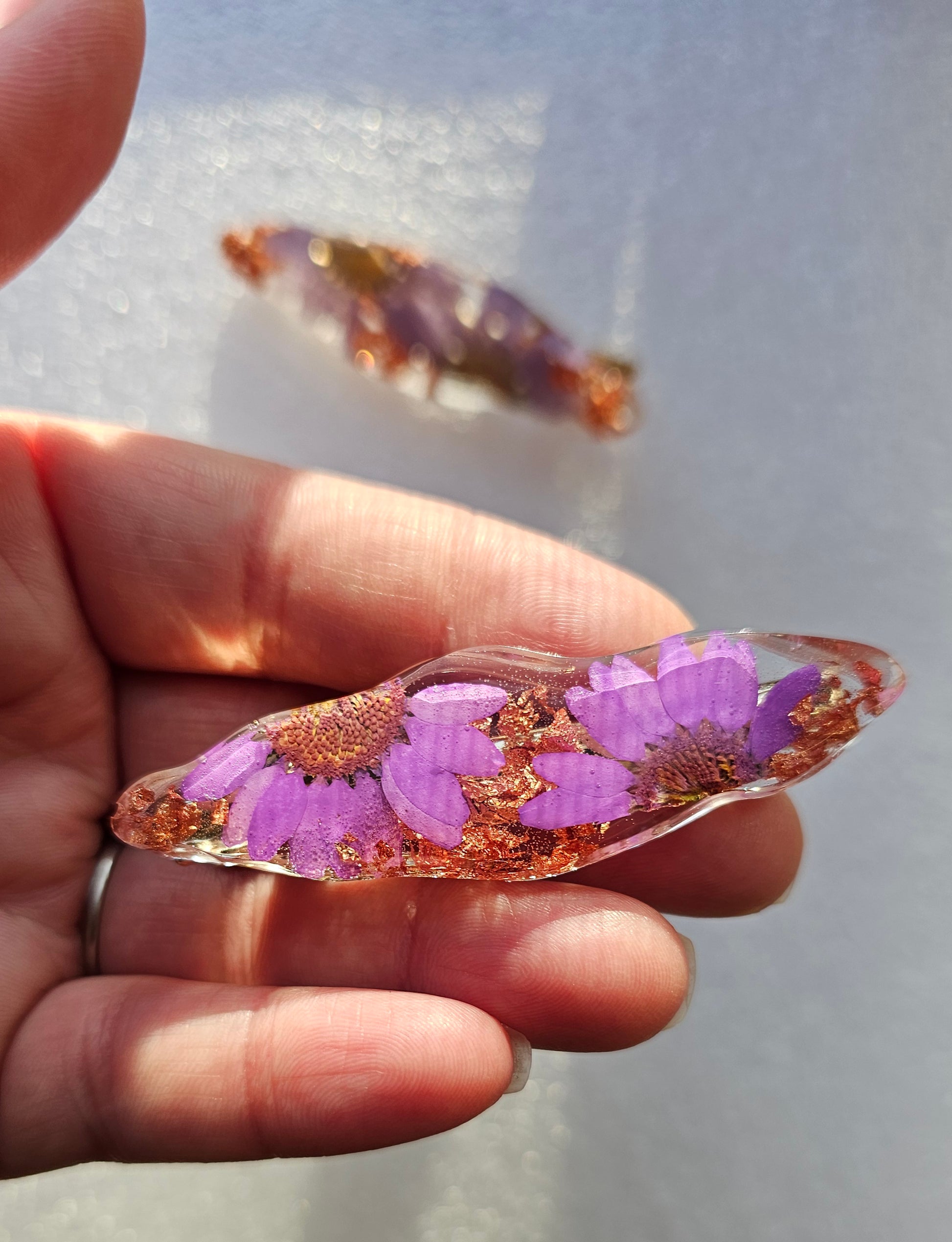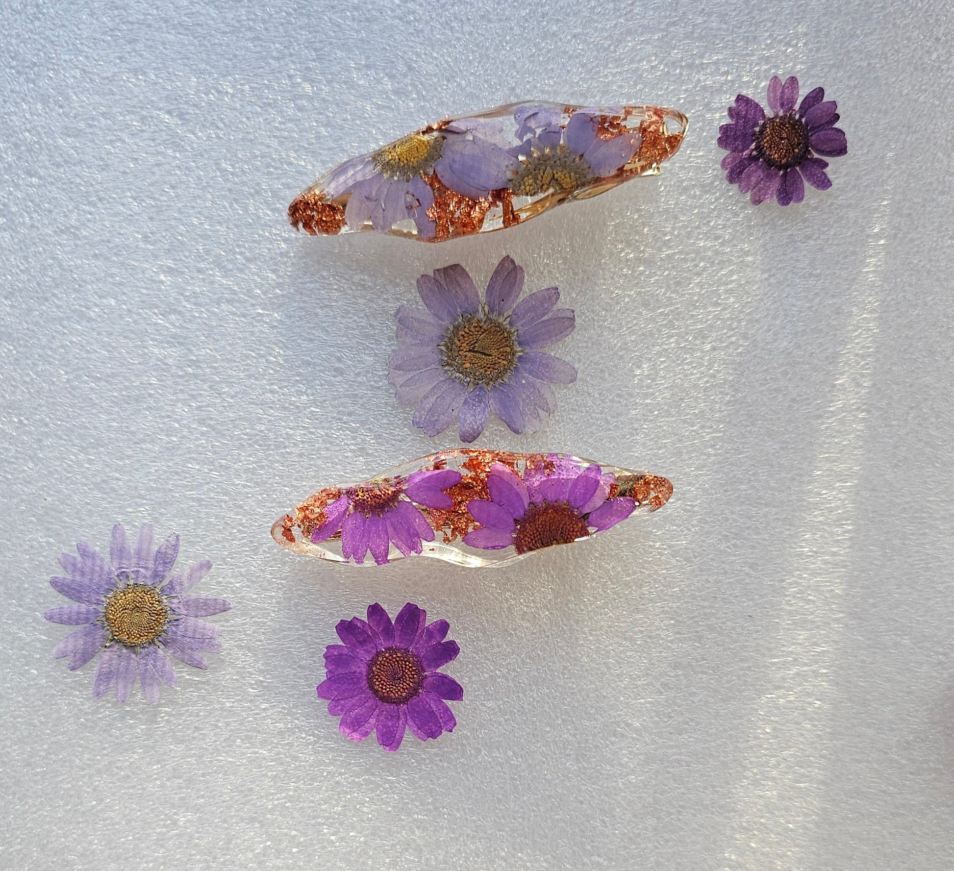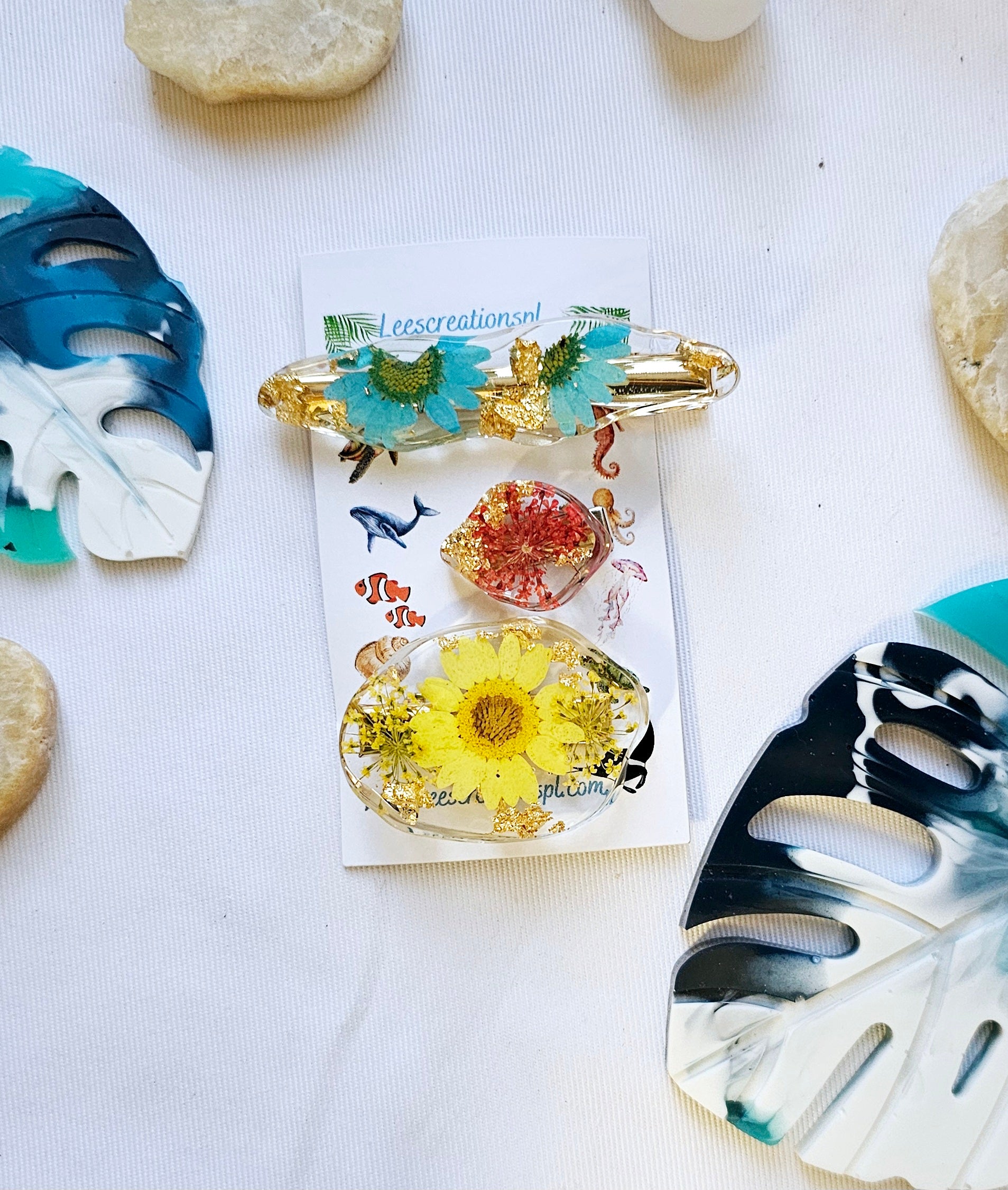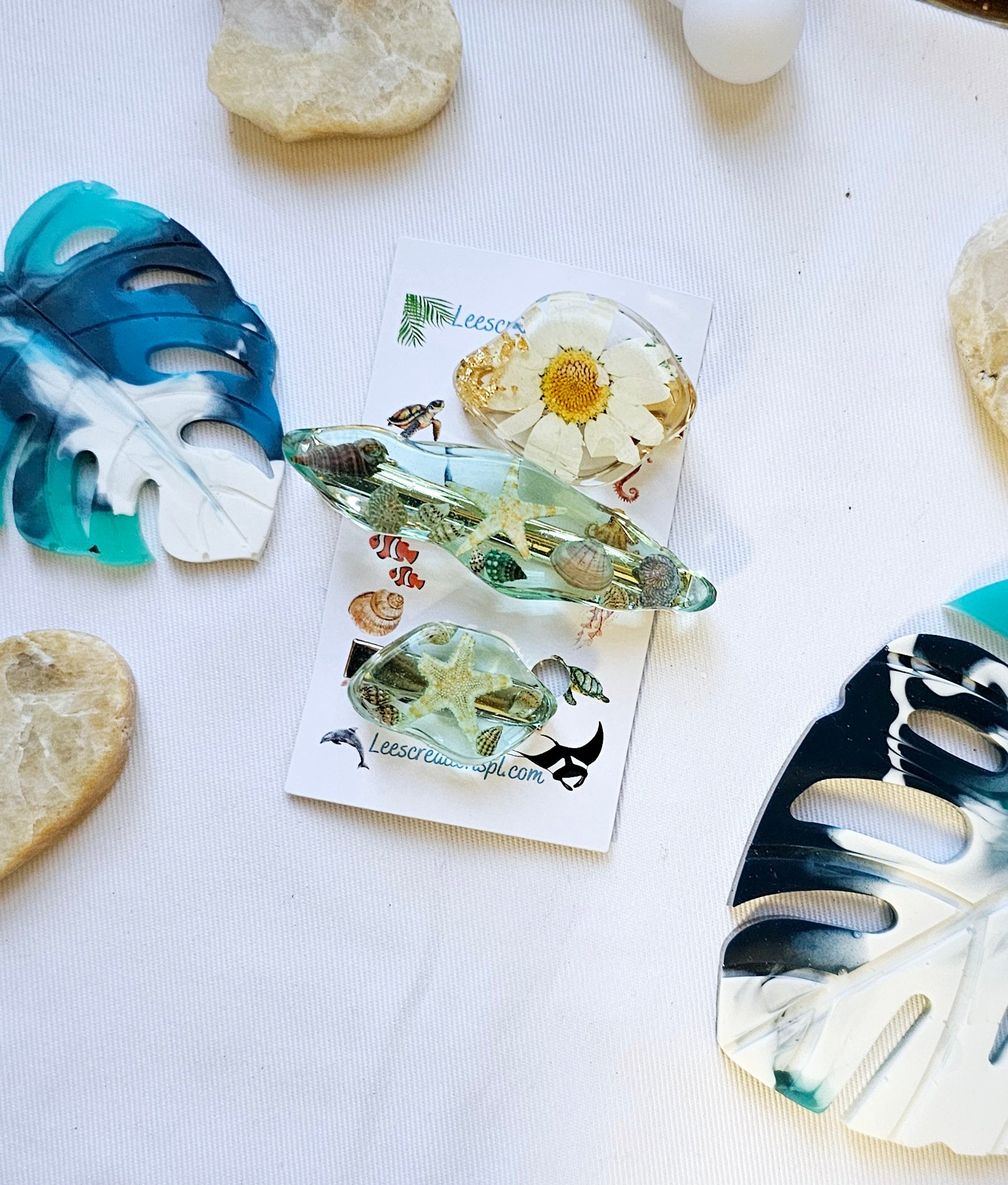These handmade hair clips are expertly crafted for a personalized touch. Made with attention to detail, these hair clips are perfect for securing your hair in style. Add a unique and elegant touch to your look with these one-of-a-kind hair clips. Set of 3