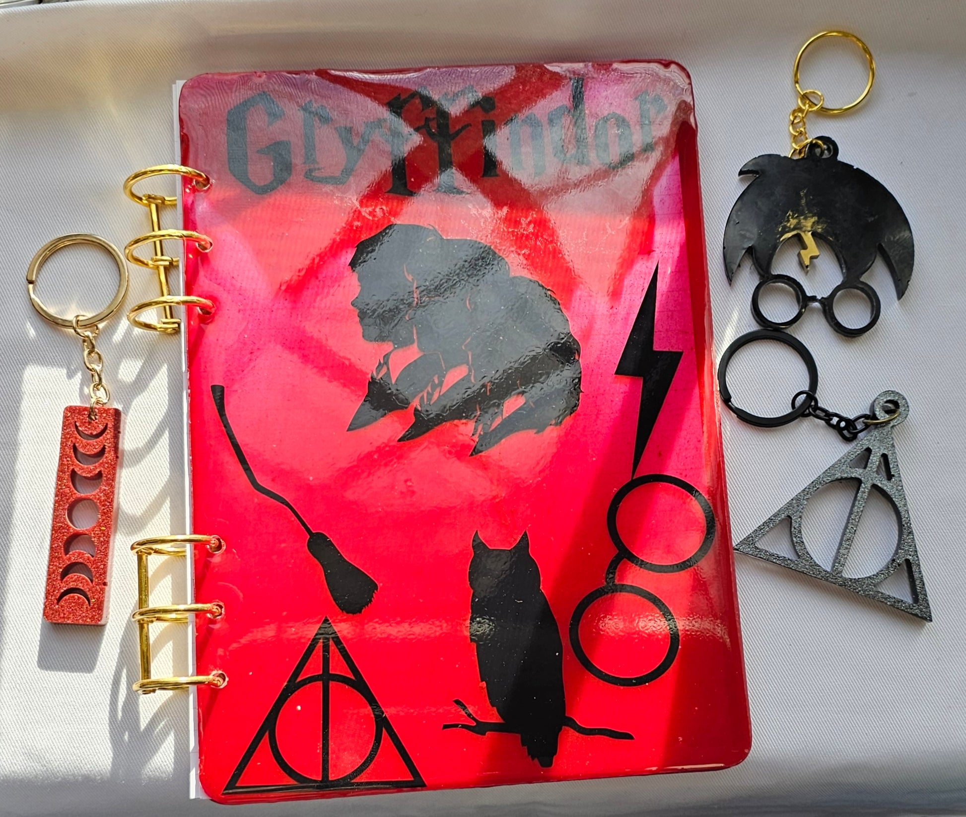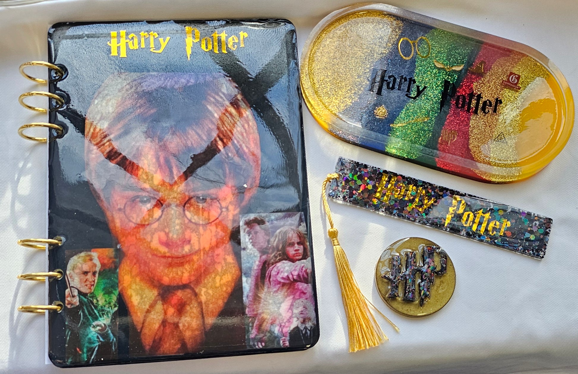This Wizard house style resin notebook set features high-quality materials, providing a durable and waterproof product that is resistant to fading. Perfect for gifting to family, friends, teachers, students, and book-loving writers, this set includes bookmark, a journal, a keychain, and a trinket tray. The bookmarks are delicately designed with smooth edges, rounded corners, and a hanging hole for added convenience and peace of mind. Product color may vary slightly due to photographic lighting.