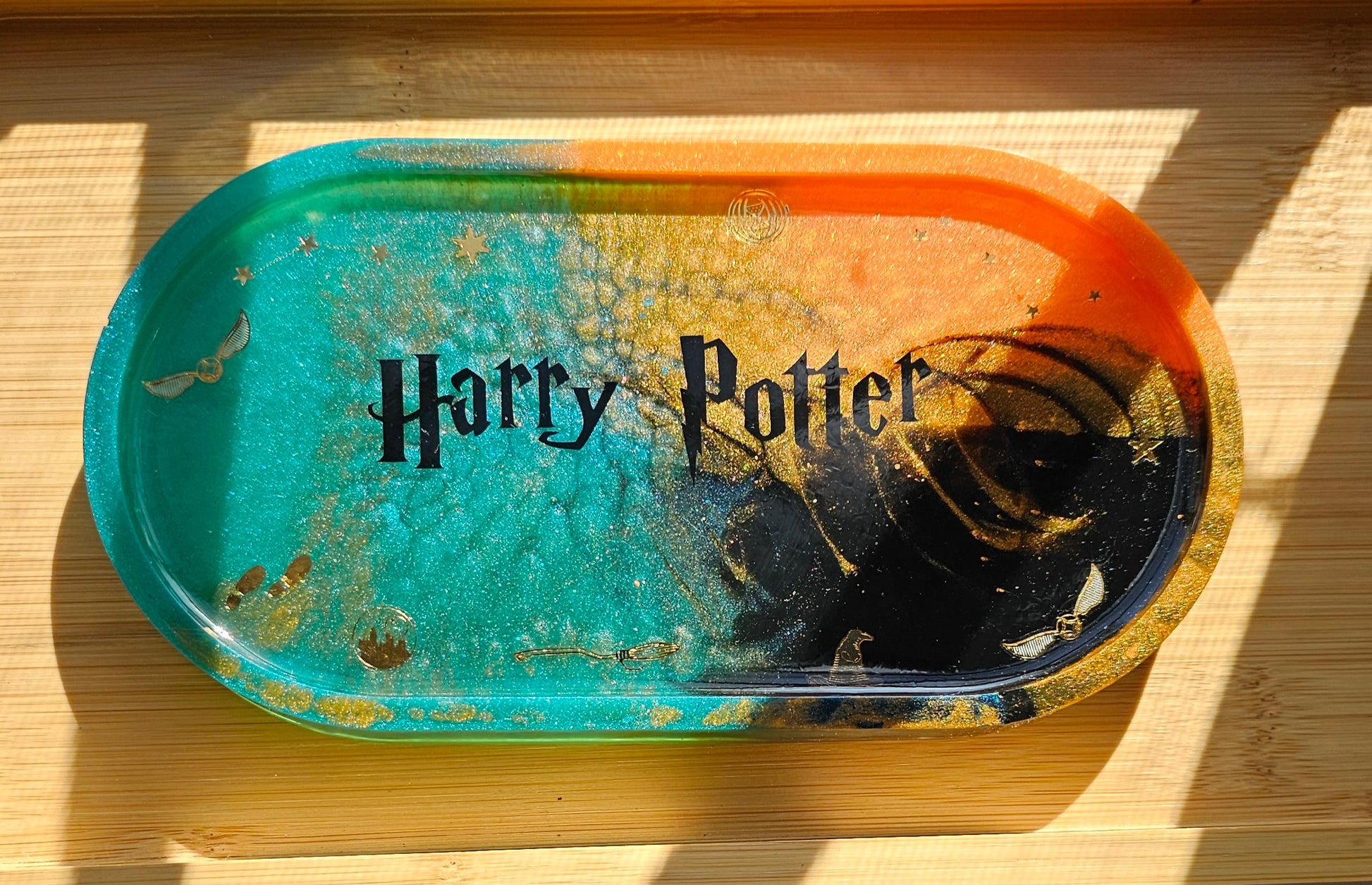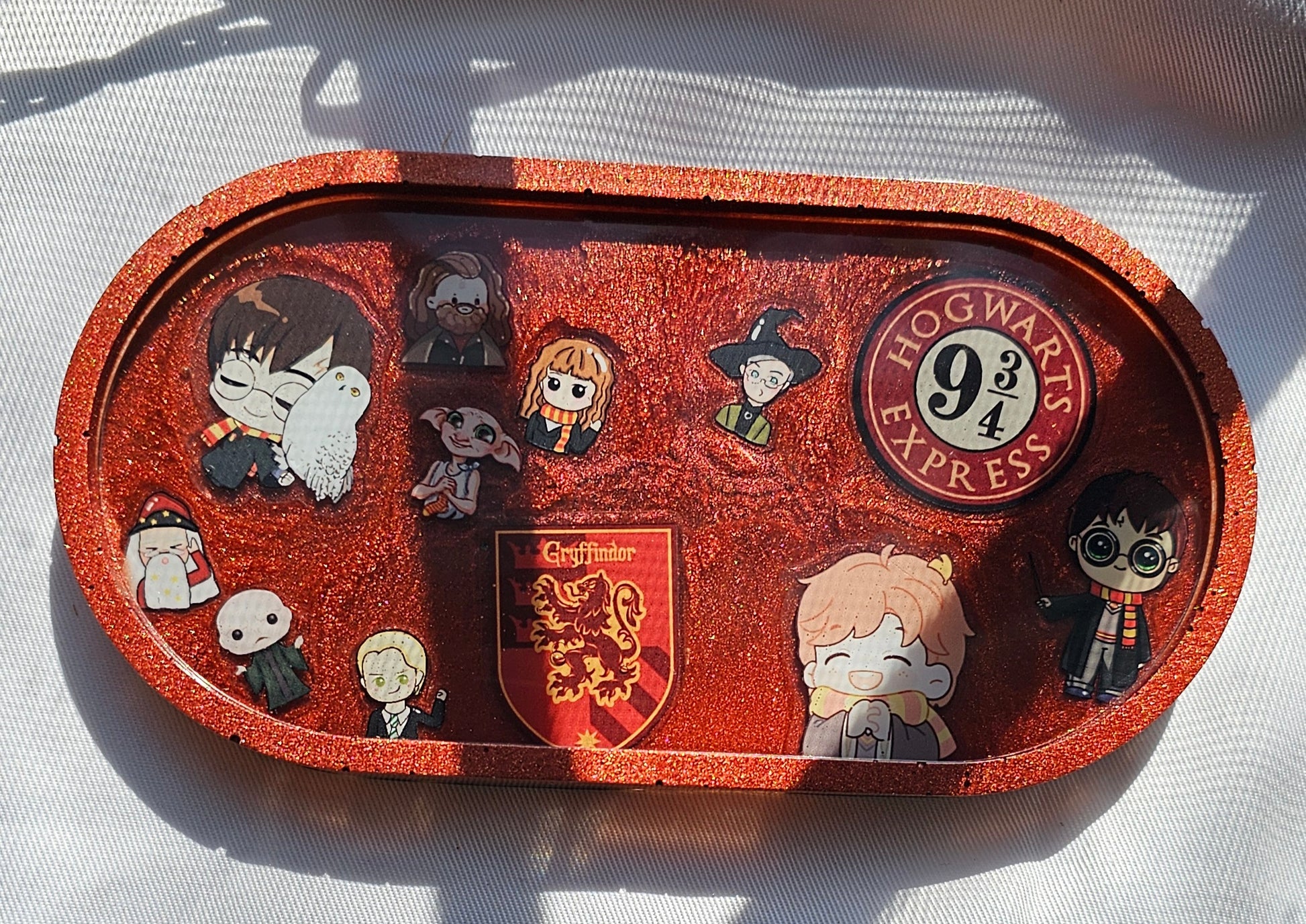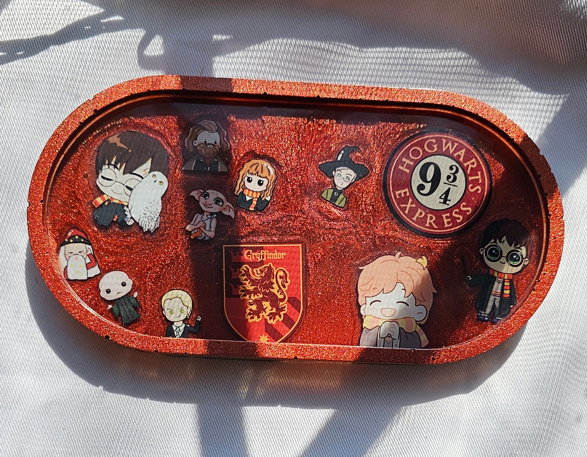 Expertly crafted with a touch of magic, these Harry Potter themed trinket trays are perfect for storing your small treasures. Whether for display or everyday use, these trays add a touch of wizardry to any space. Made for fans by fans, they are a must-have for any Harry Potter enthusiast. No two trays are alike