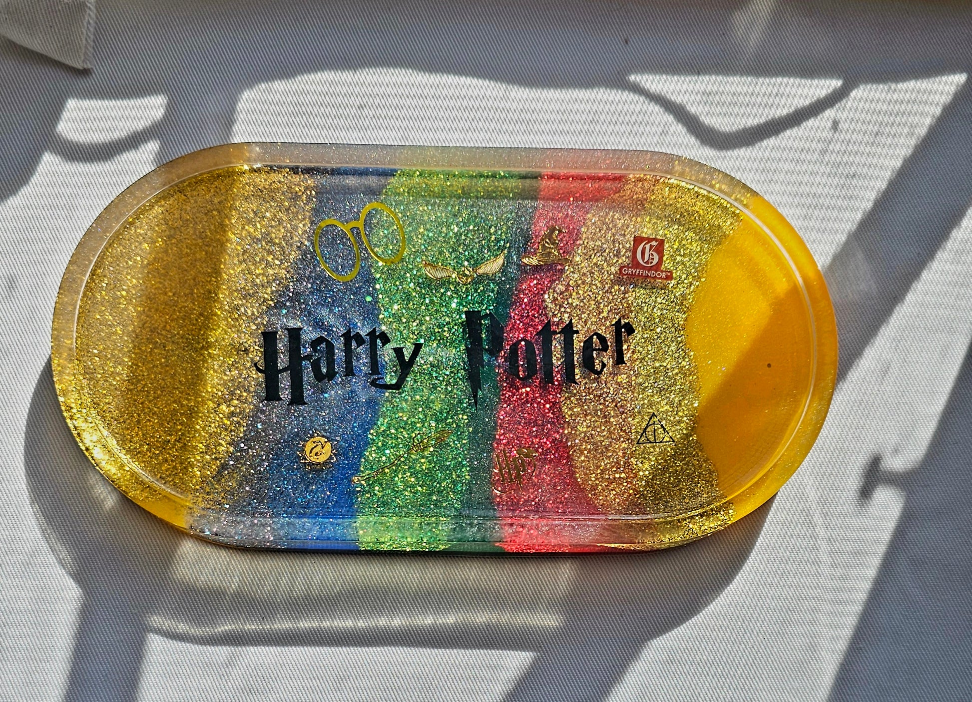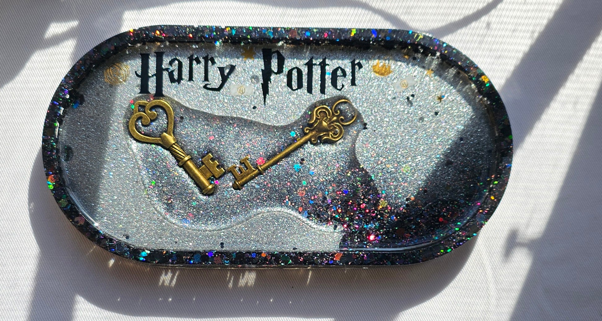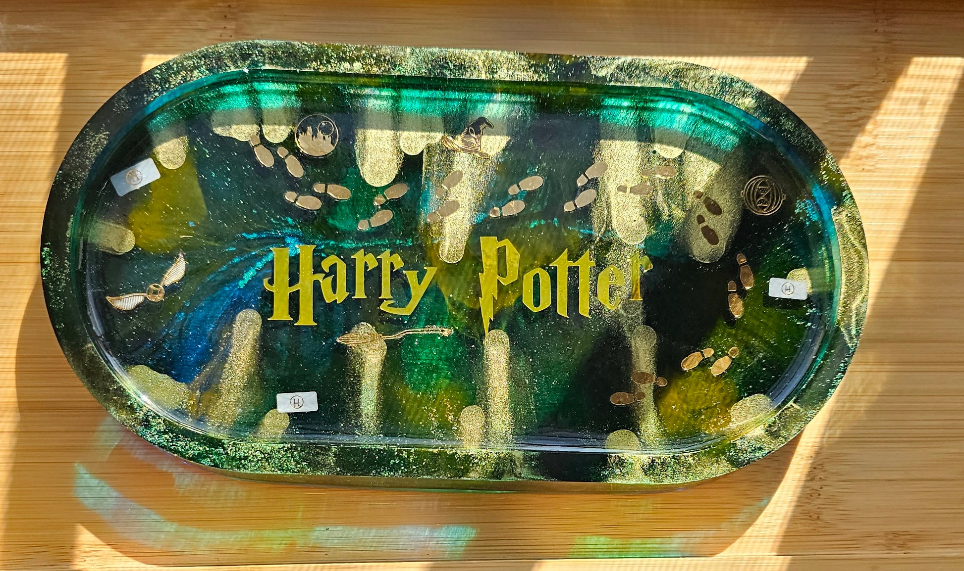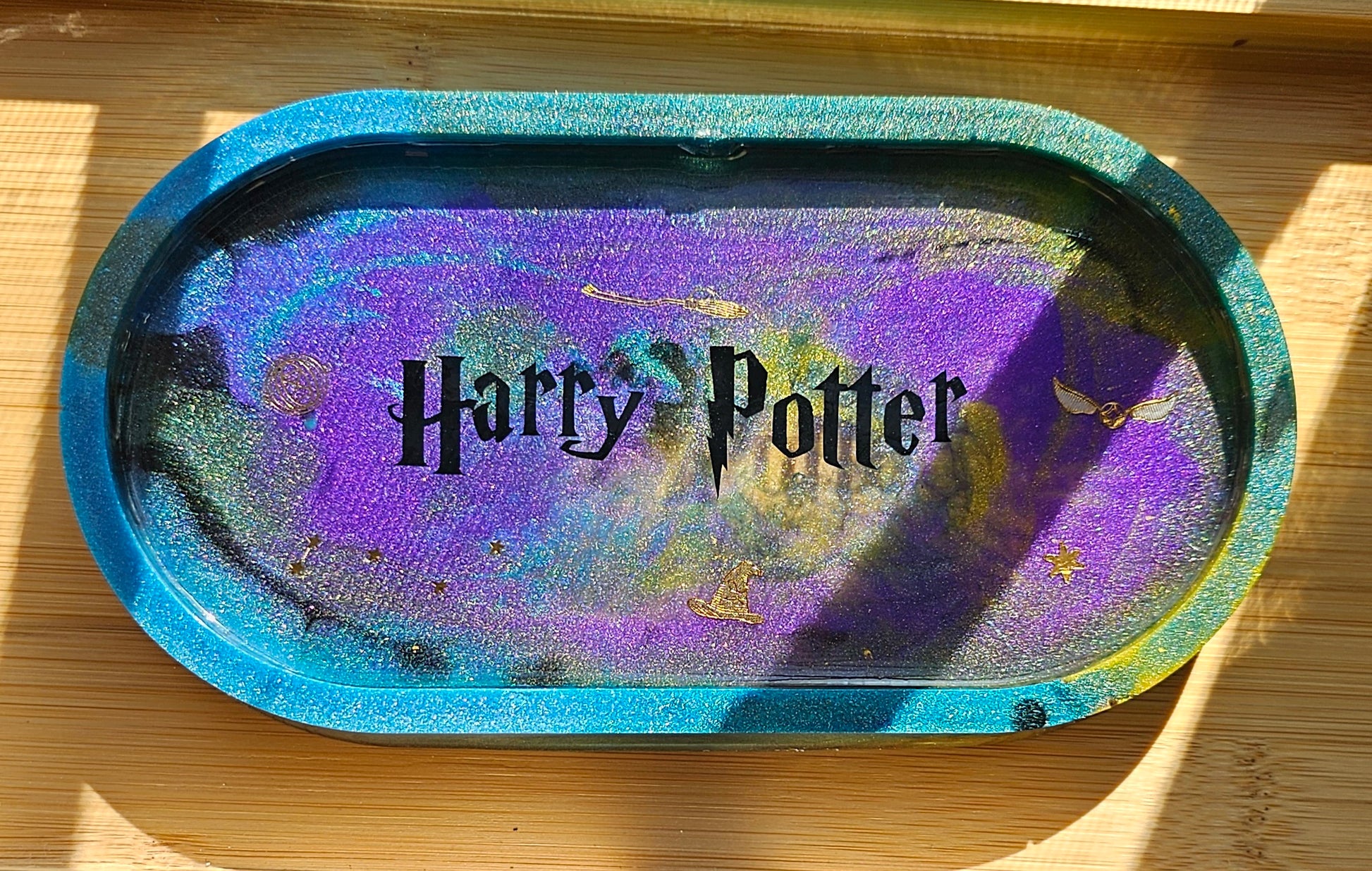 Expertly crafted with a touch of magic, these Harry Potter themed trinket trays are perfect for storing your small treasures. Whether for display or everyday use, these trays add a touch of wizardry to any space. Made for fans by fans, they are a must-have for any Harry Potter enthusiast. No two trays are alike