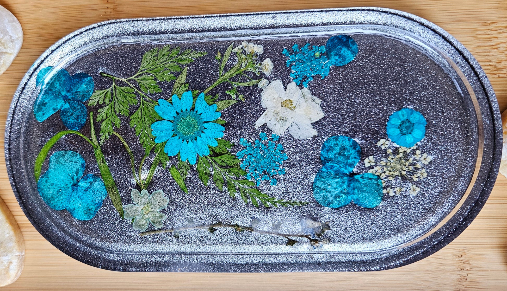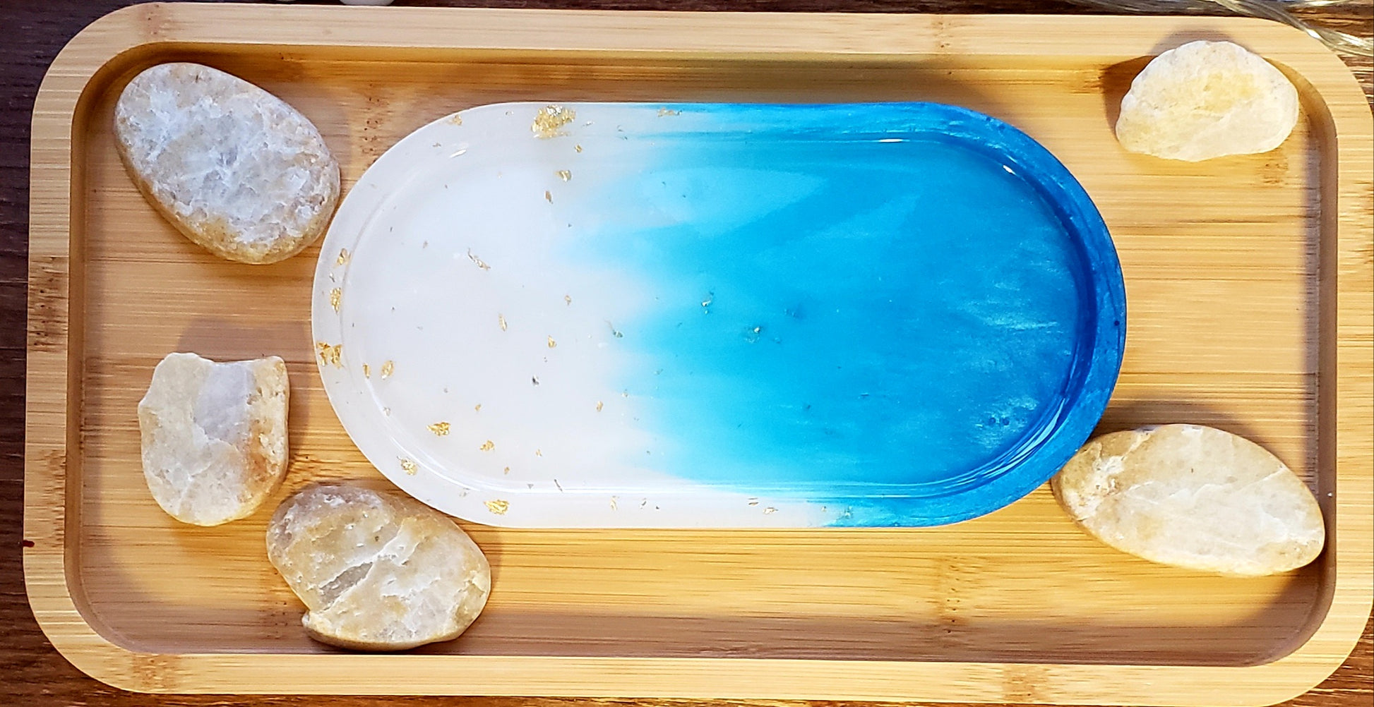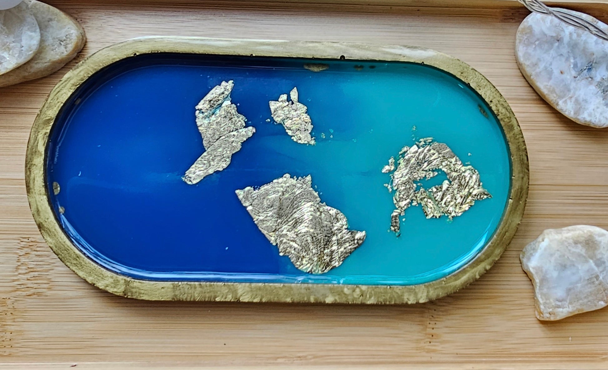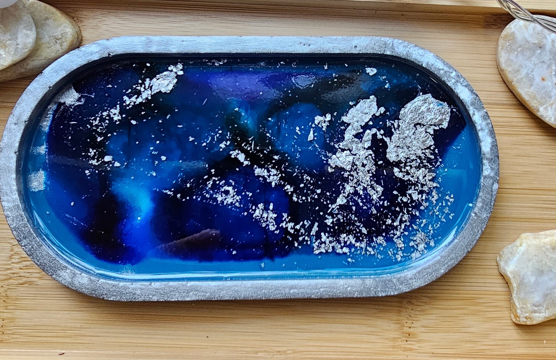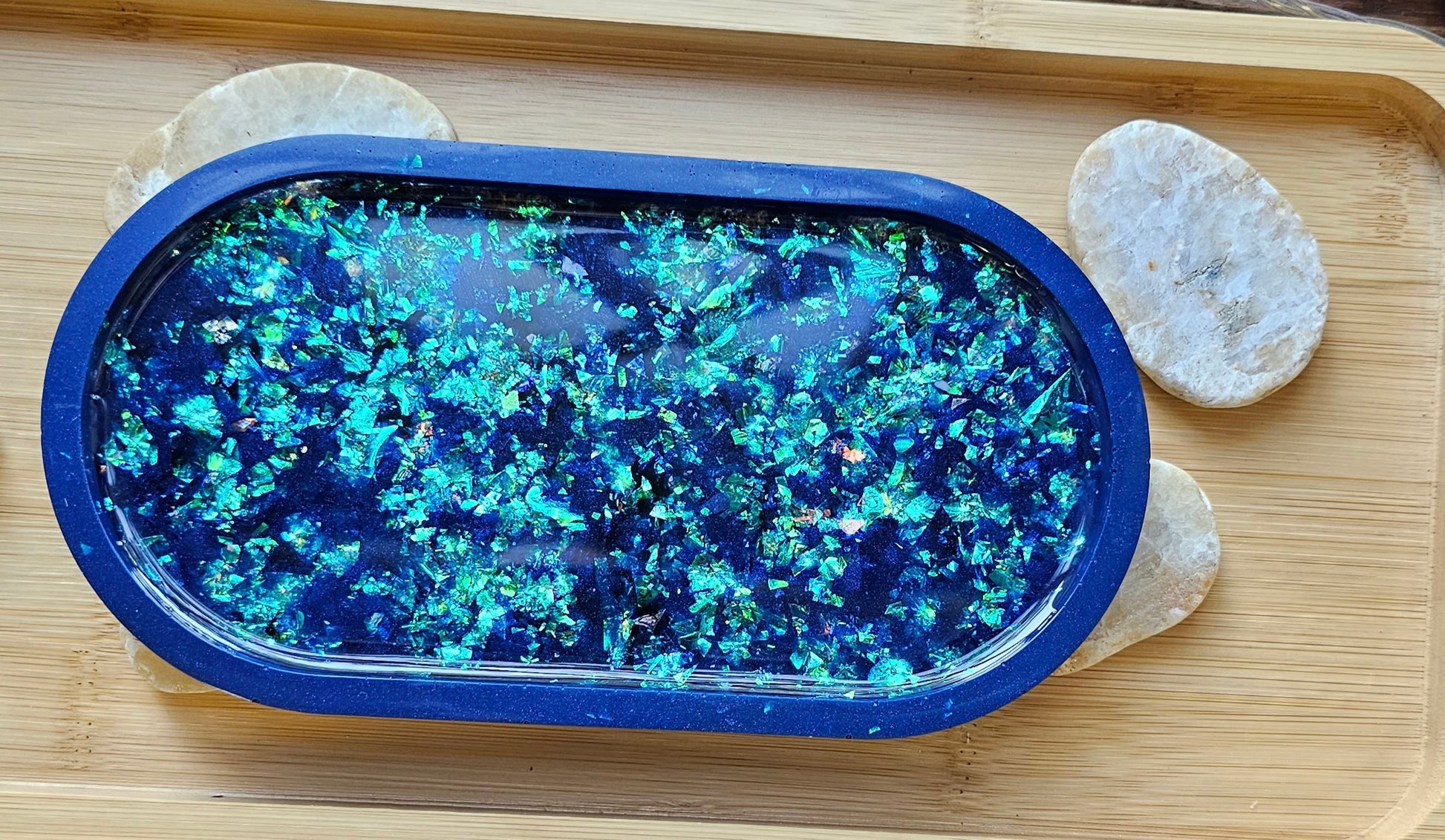 This resin Jewelry Trinket Tray provides a unique handmade finish for any area. It's perfect for storing jewelry, change, and far more. Handcrafted specially for you, please allow 3-7 days for completion - plus extra in case of any imperfections due to the handmade method. Be sure to take special care while cleaning - warm wet cloth only, no microwaves or dishwashers - and keep away from high heat. Store in a safe place for pets and children. Colors may vary on different screens and gadgets. For any questions, please email info@leescreationspl.com - thank you for your order!