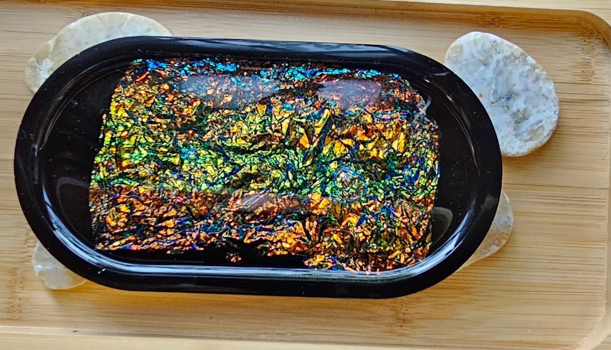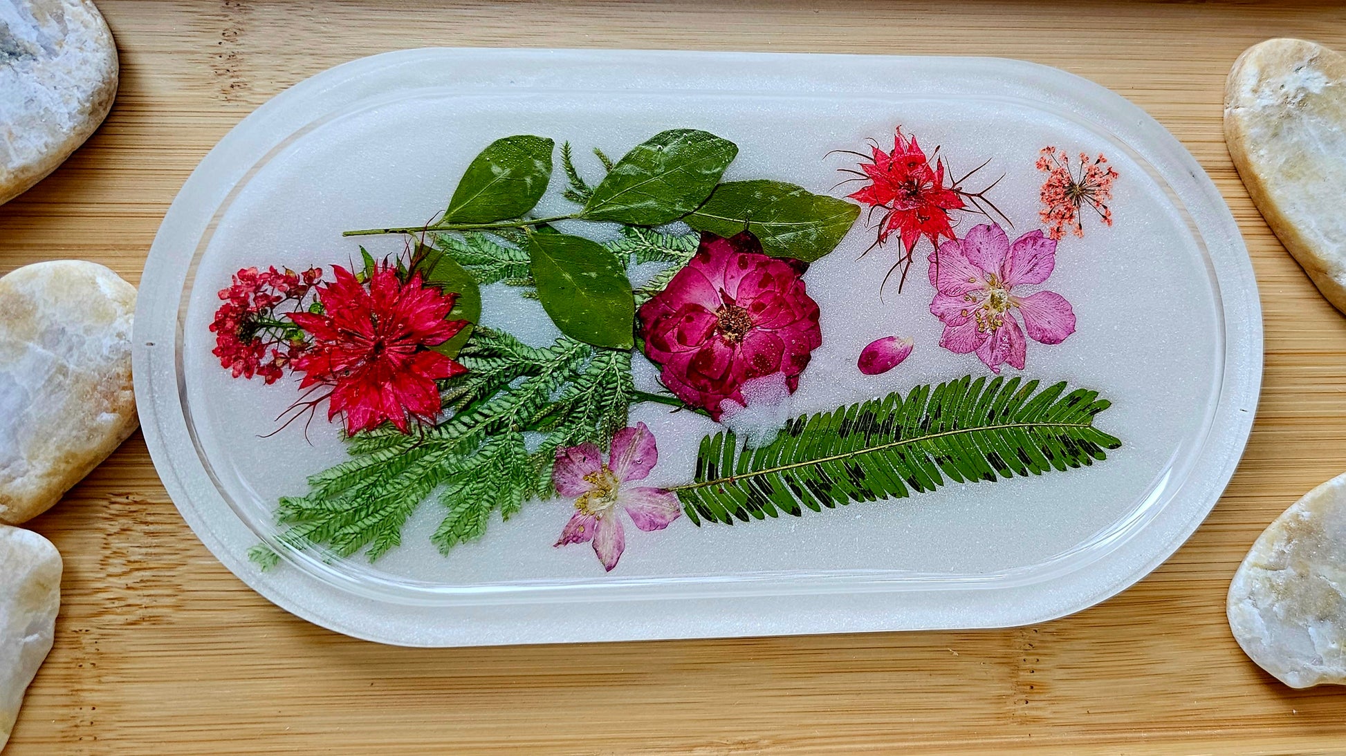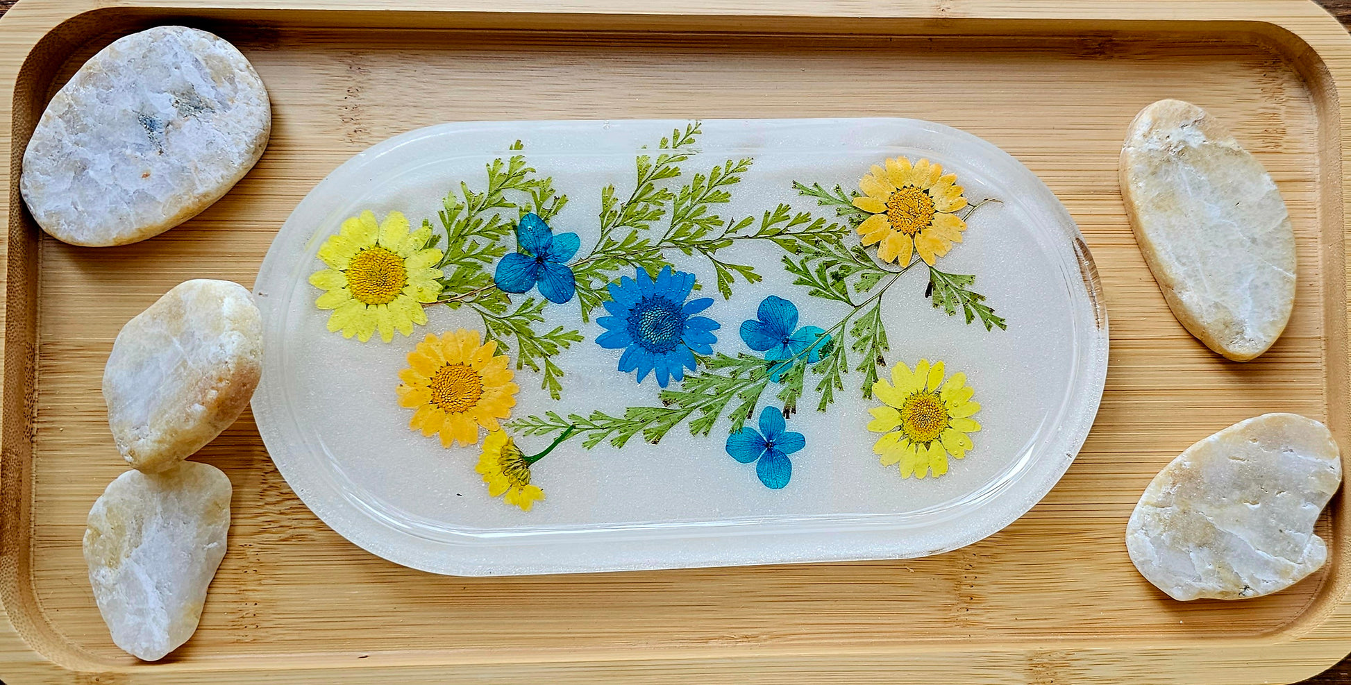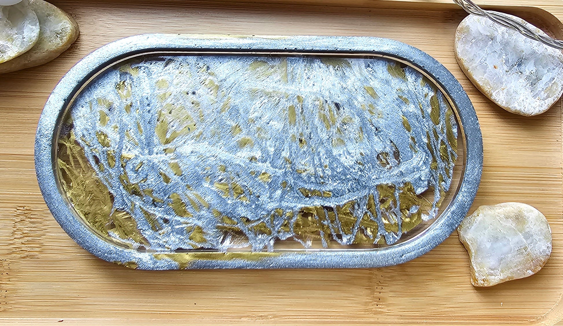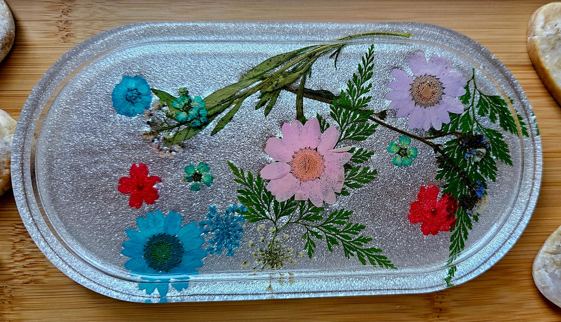 This resin Jewelry Trinket Tray provides a unique handmade finish for any area. It's perfect for storing jewelry, change, and far more. Handcrafted specially for you, please allow 3-7 days for completion - plus extra in case of any imperfections due to the handmade method. Be sure to take special care while cleaning - warm wet cloth only, no microwaves or dishwashers - and keep away from high heat. Store in a safe place for pets and children. Colors may vary on different screens and gadgets. For any questions, please email info@leescreationspl.com - thank you for your order!