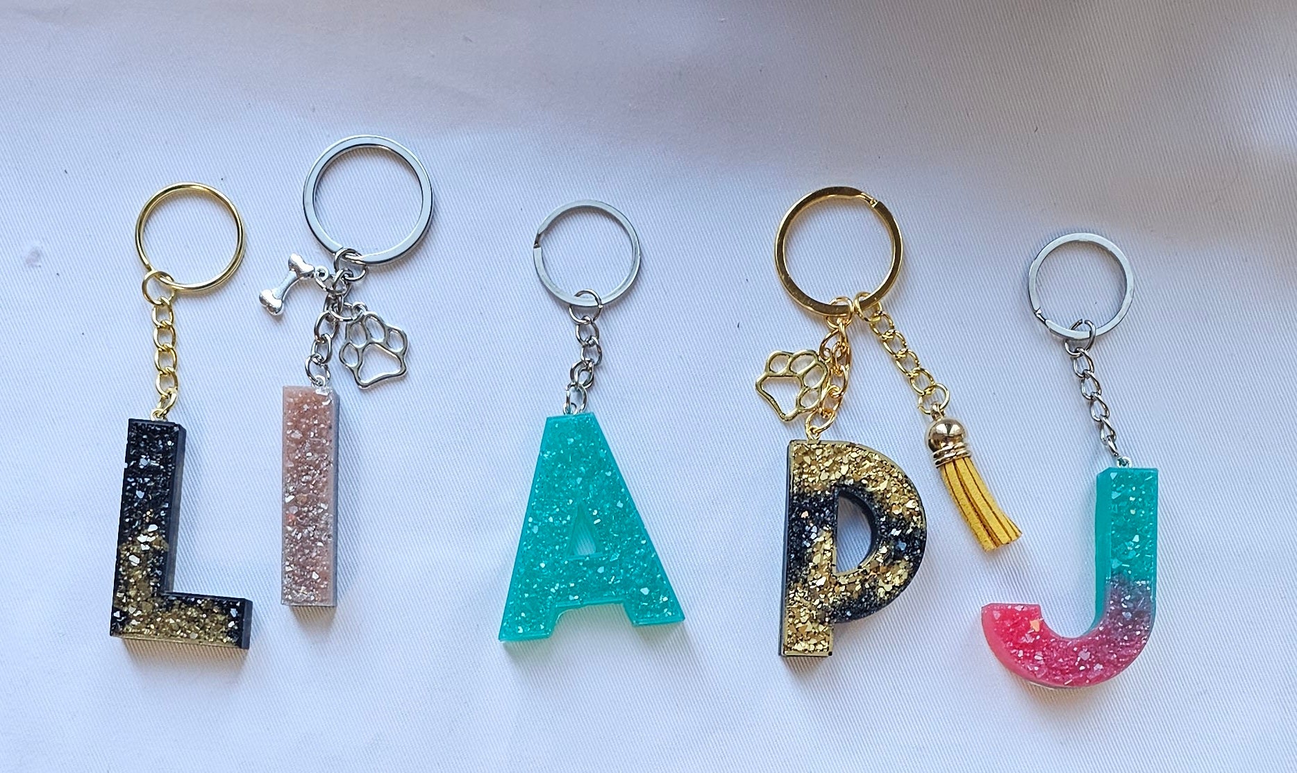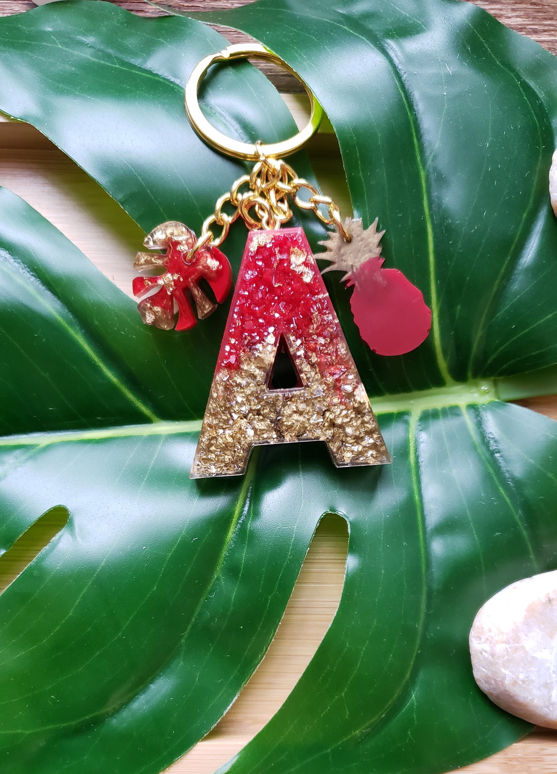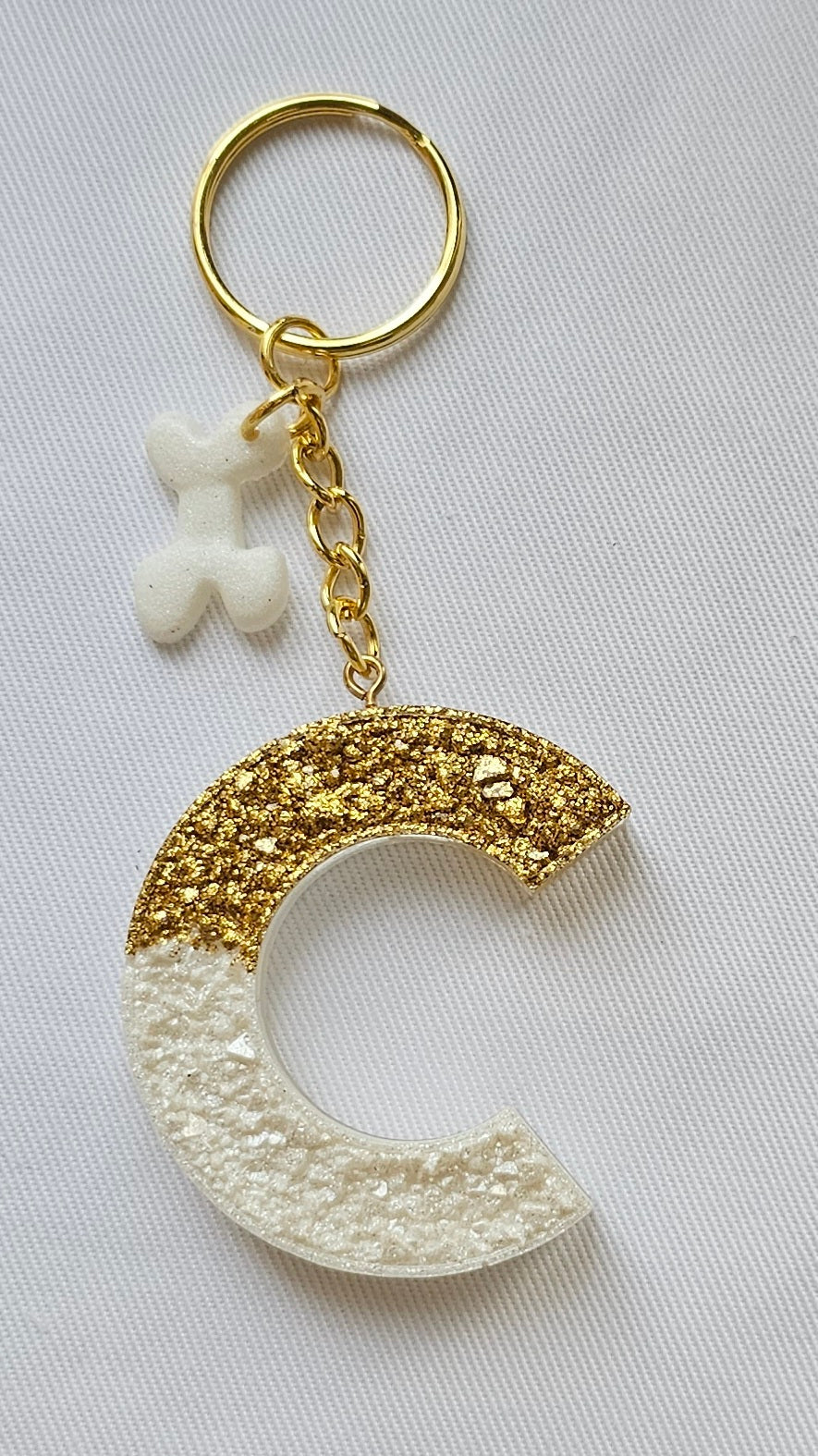 This listing includes one (1) resin letter/number with the gold keychain already attached.