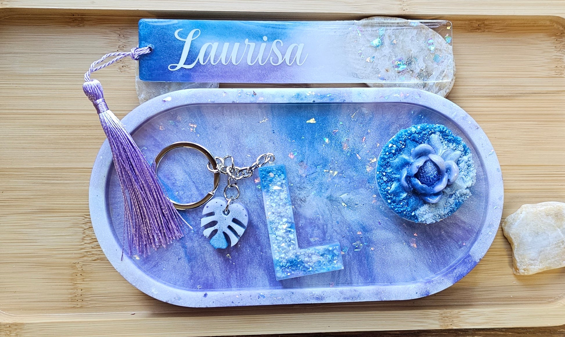 Resin products can not be identical because of how resin works. The product you receive will not look exactly like the listing photo keychains but I try my absolutely hardest to make them all very similar looking.