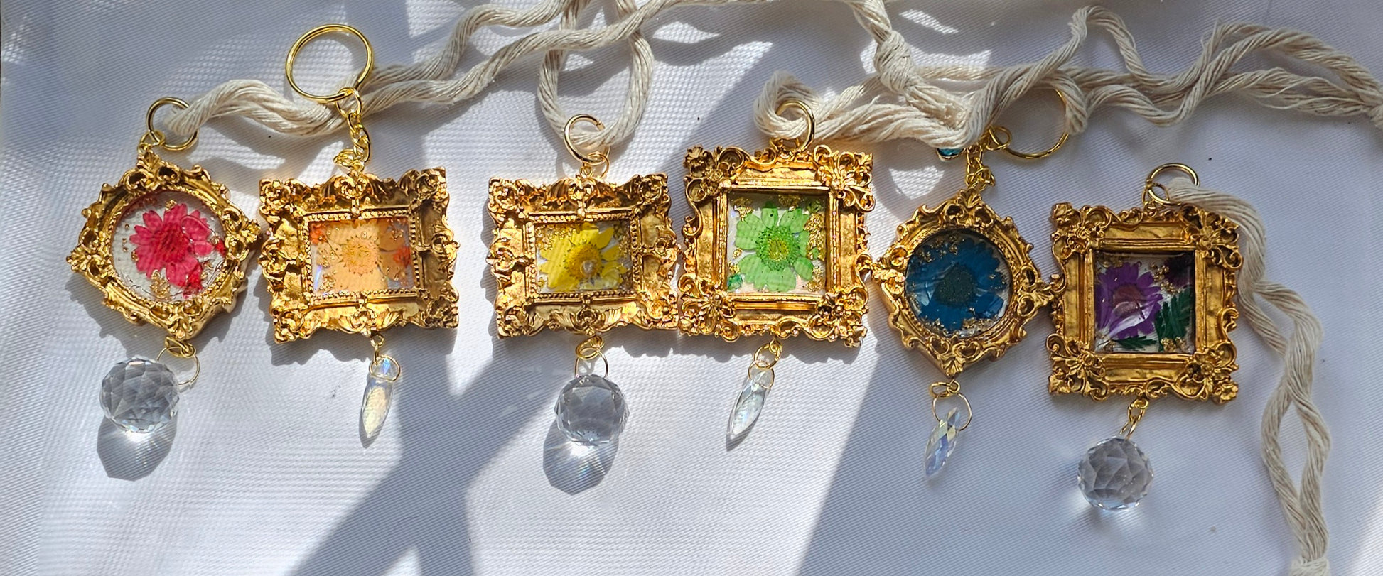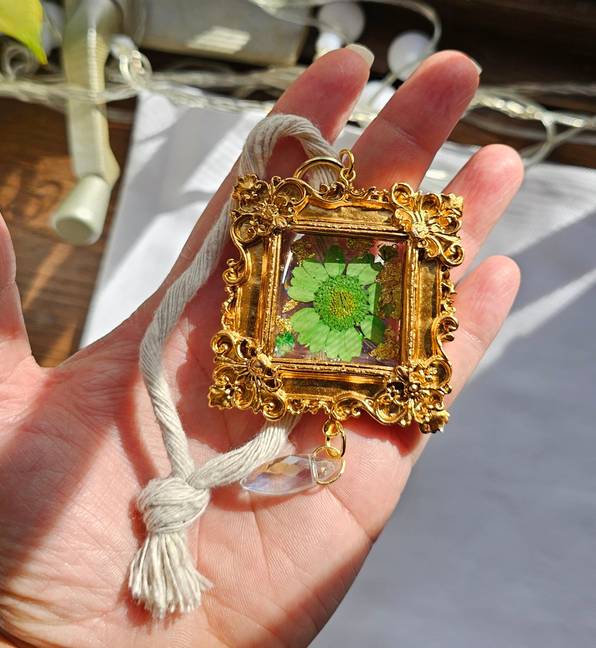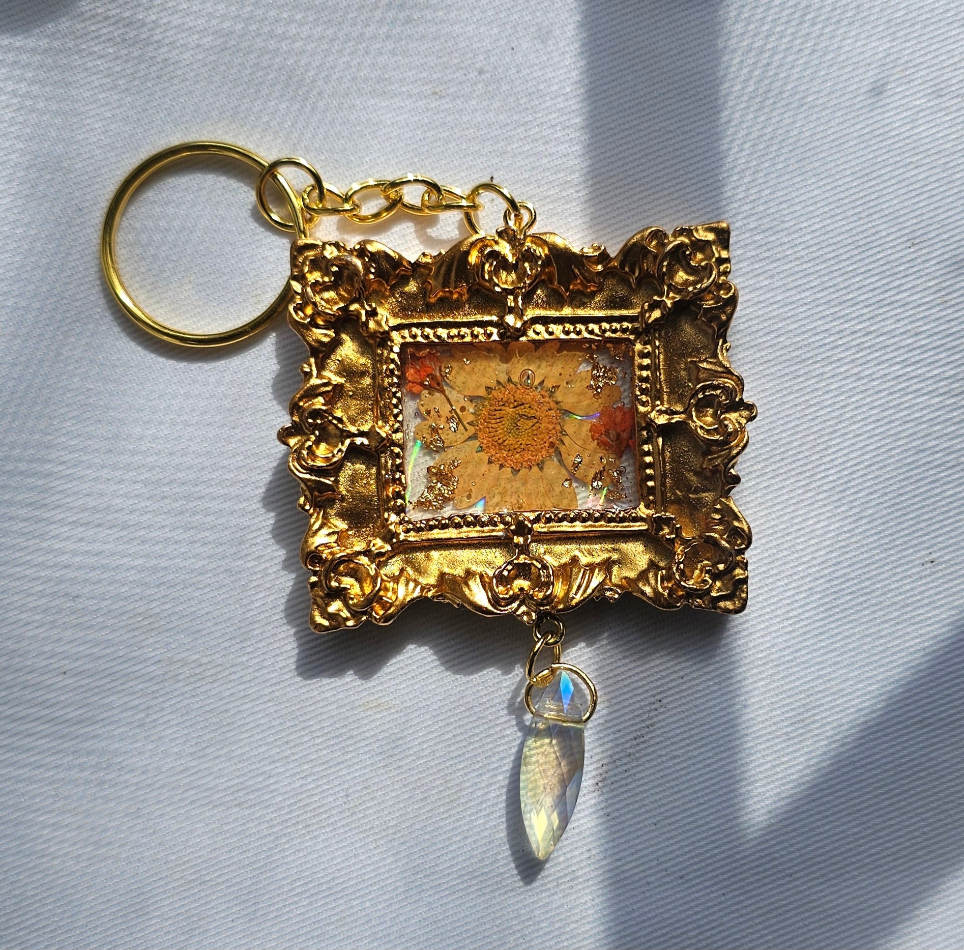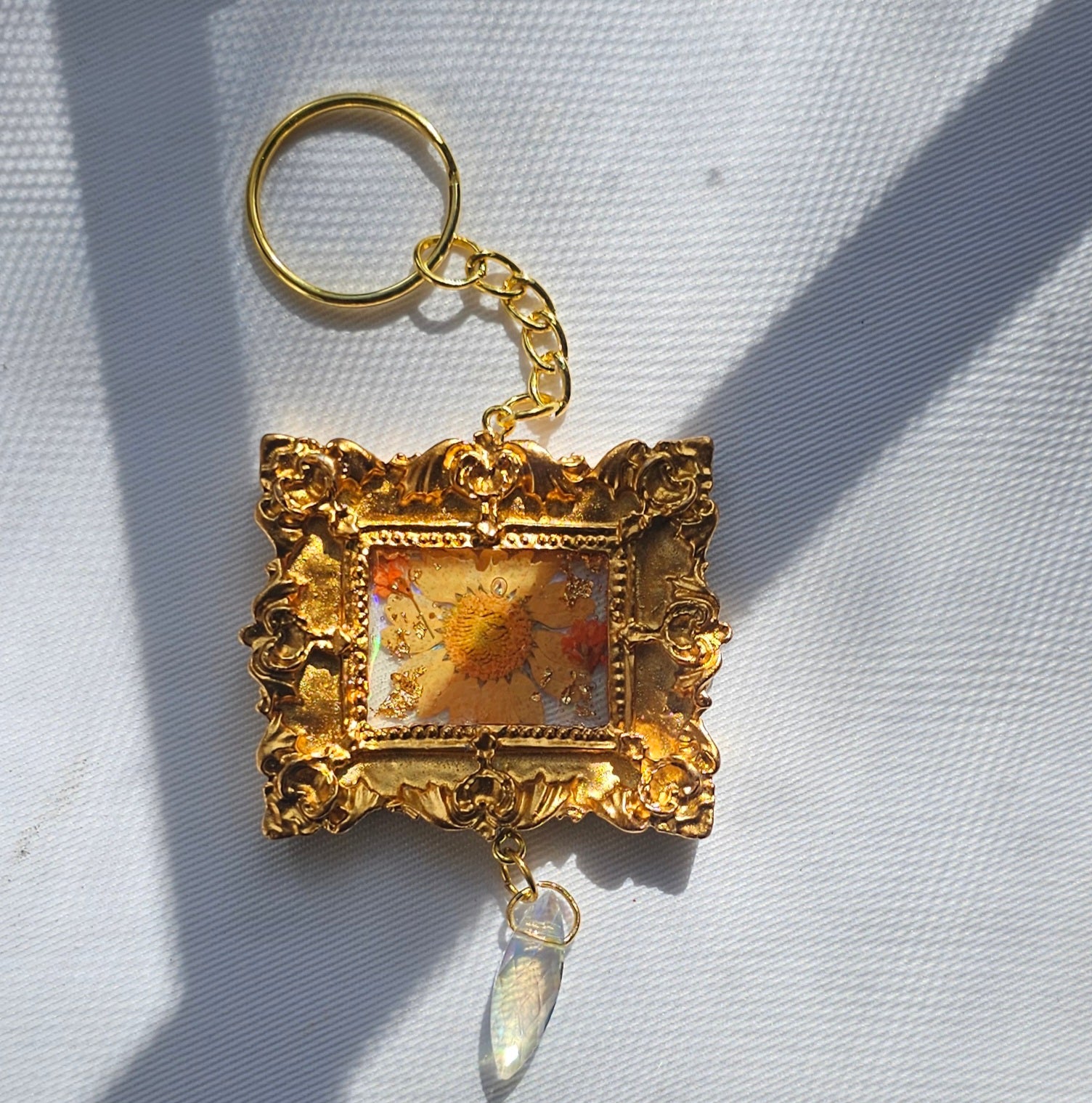 This Mini Vintage frame suncatcher doubles as a charming keychain, handcrafted with care to brighten your day. Its delicate floral design catches the light beautifully, adding a touch of vintage elegance wherever you carry it. Perfect for gifting or keeping as a personal keepsake, this piece combines style with heartfelt craftsmanship.