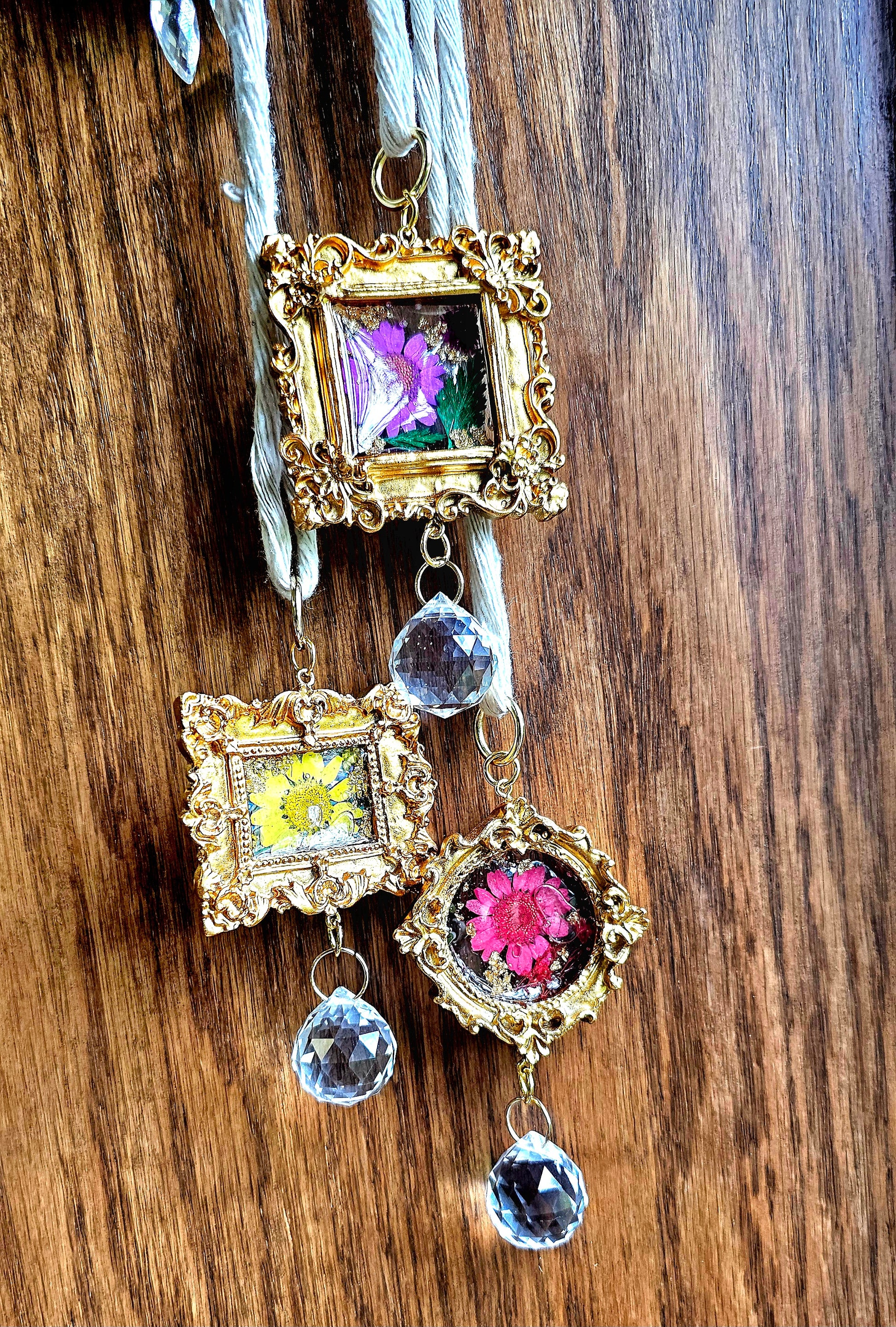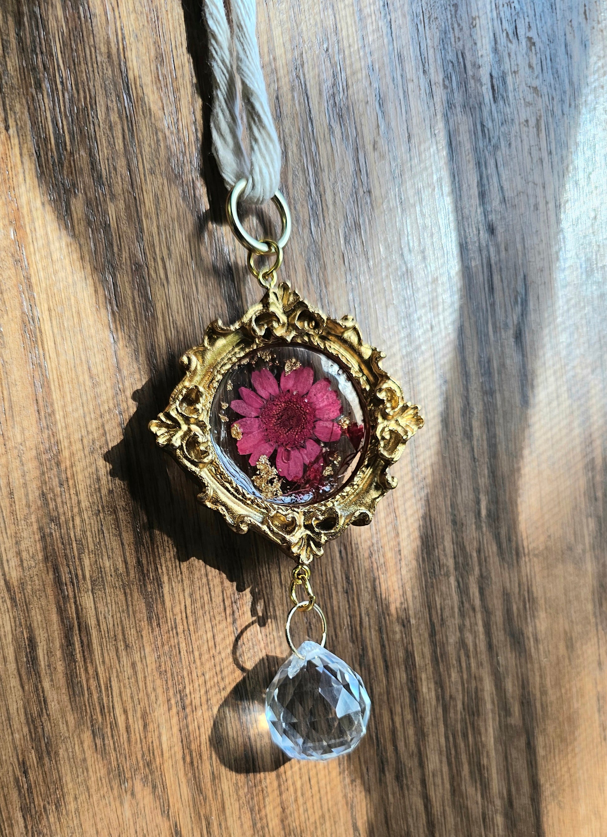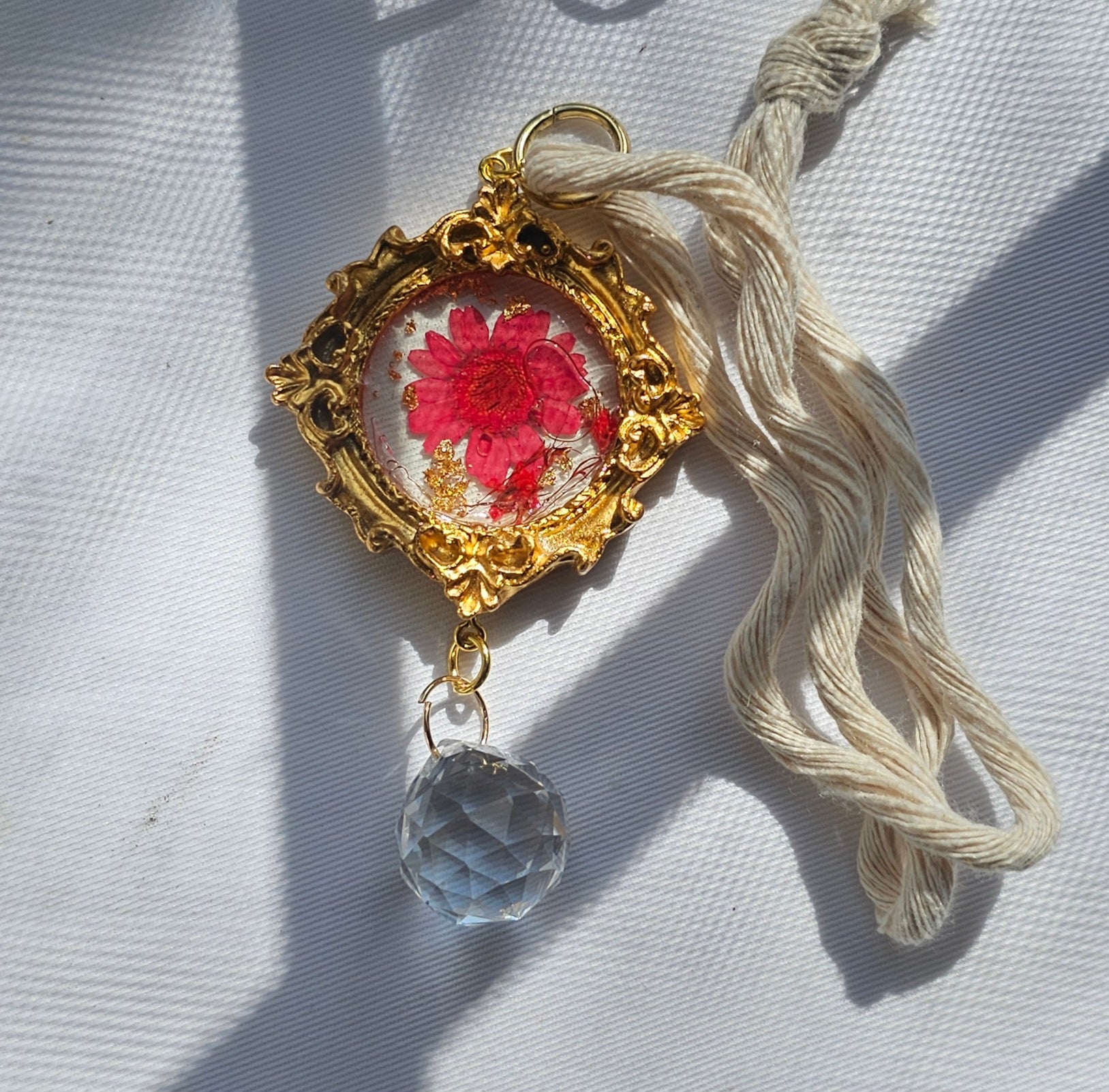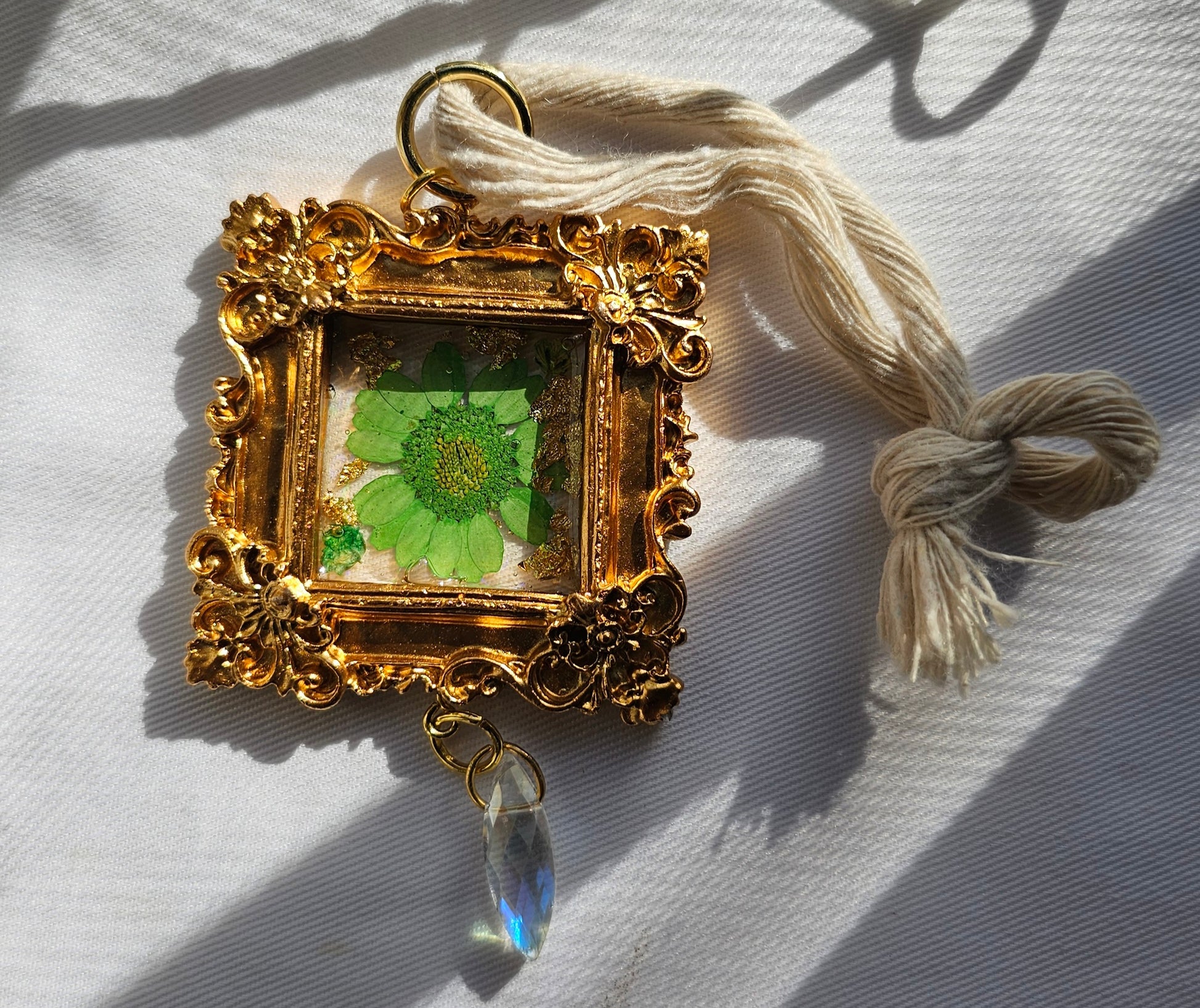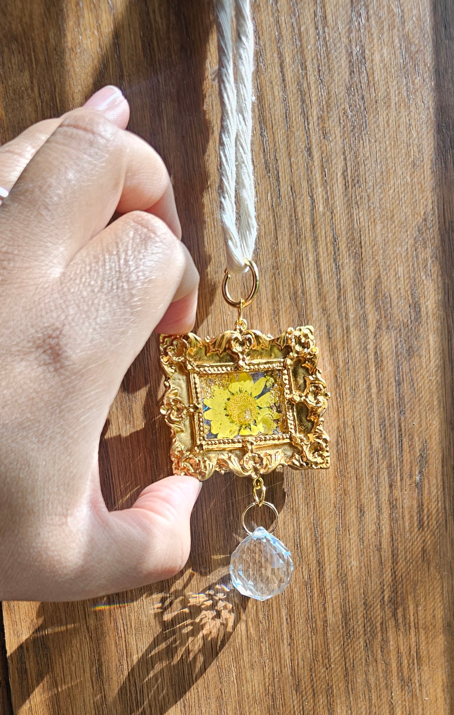 This Mini Vintage frame suncatcher doubles as a charming keychain, handcrafted with care to brighten your day. Its delicate floral design catches the light beautifully, adding a touch of vintage elegance wherever you carry it. Perfect for gifting or keeping as a personal keepsake, this piece combines style with heartfelt craftsmanship.
