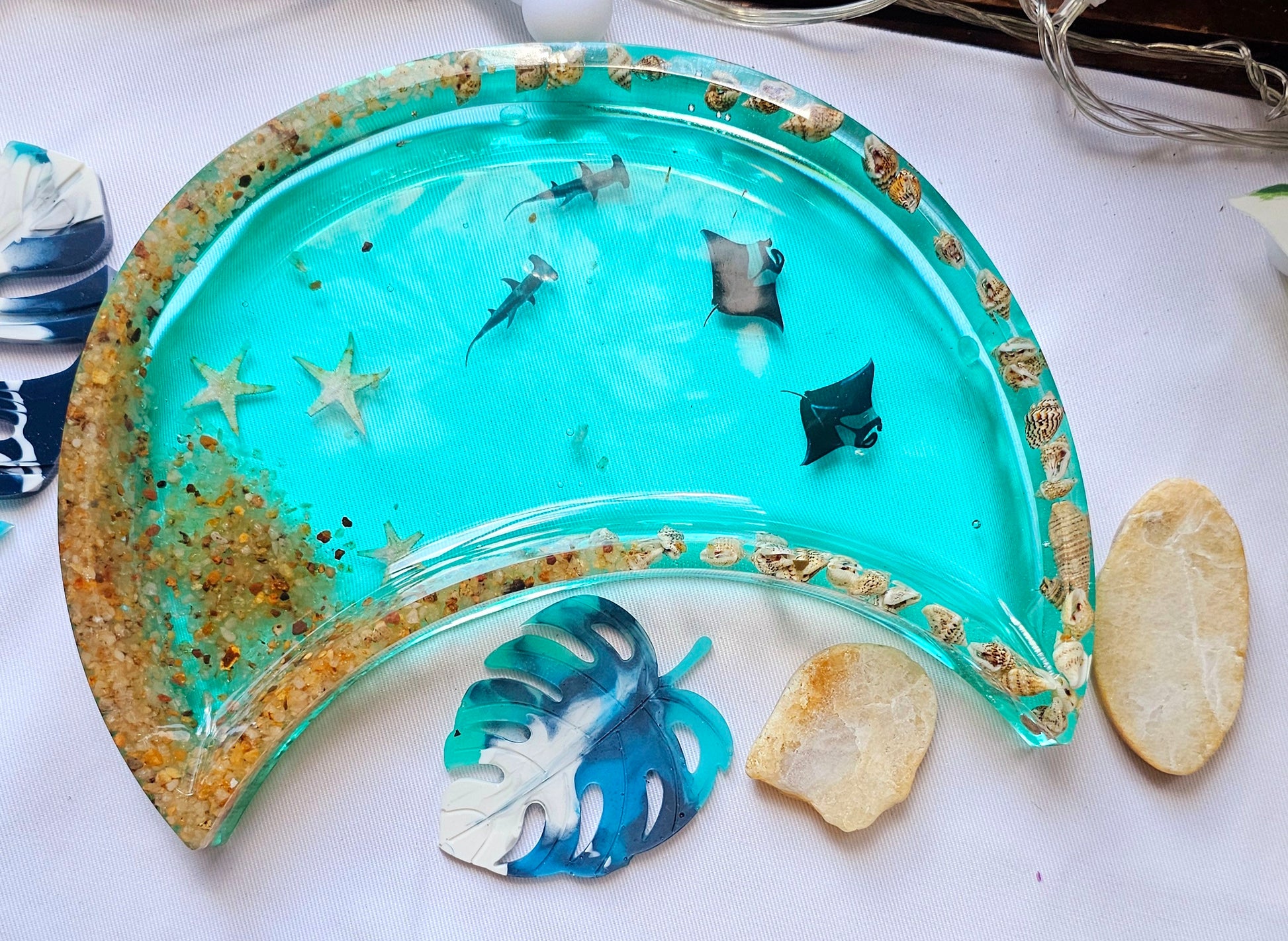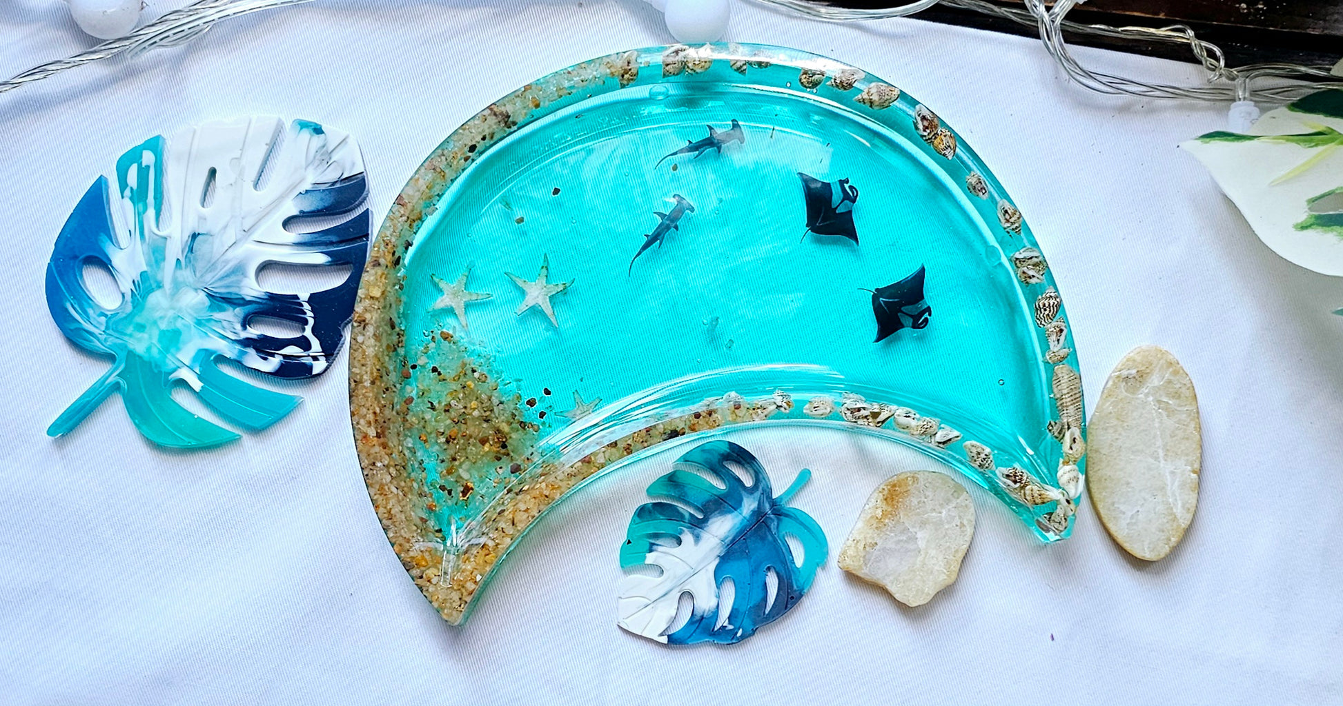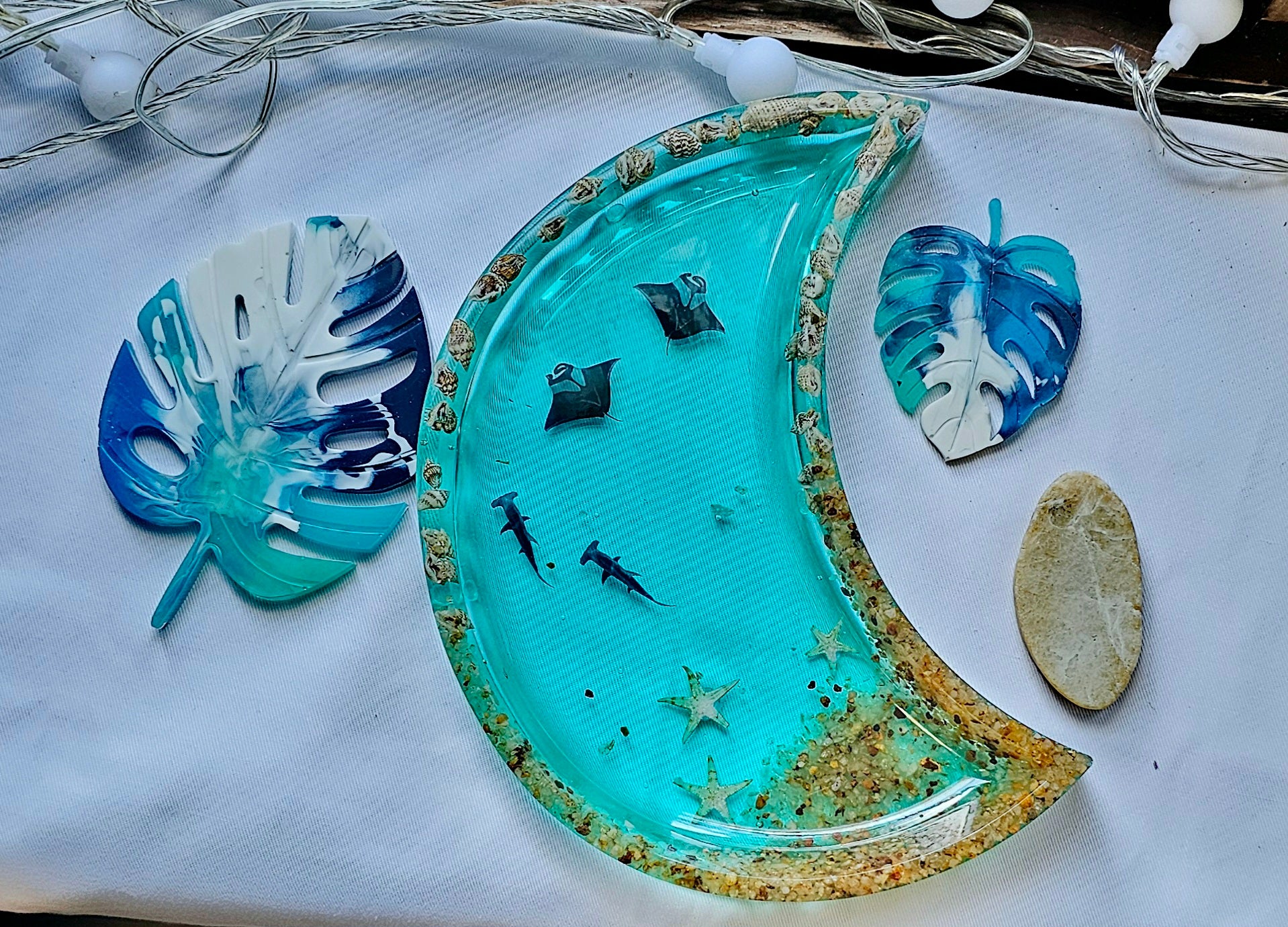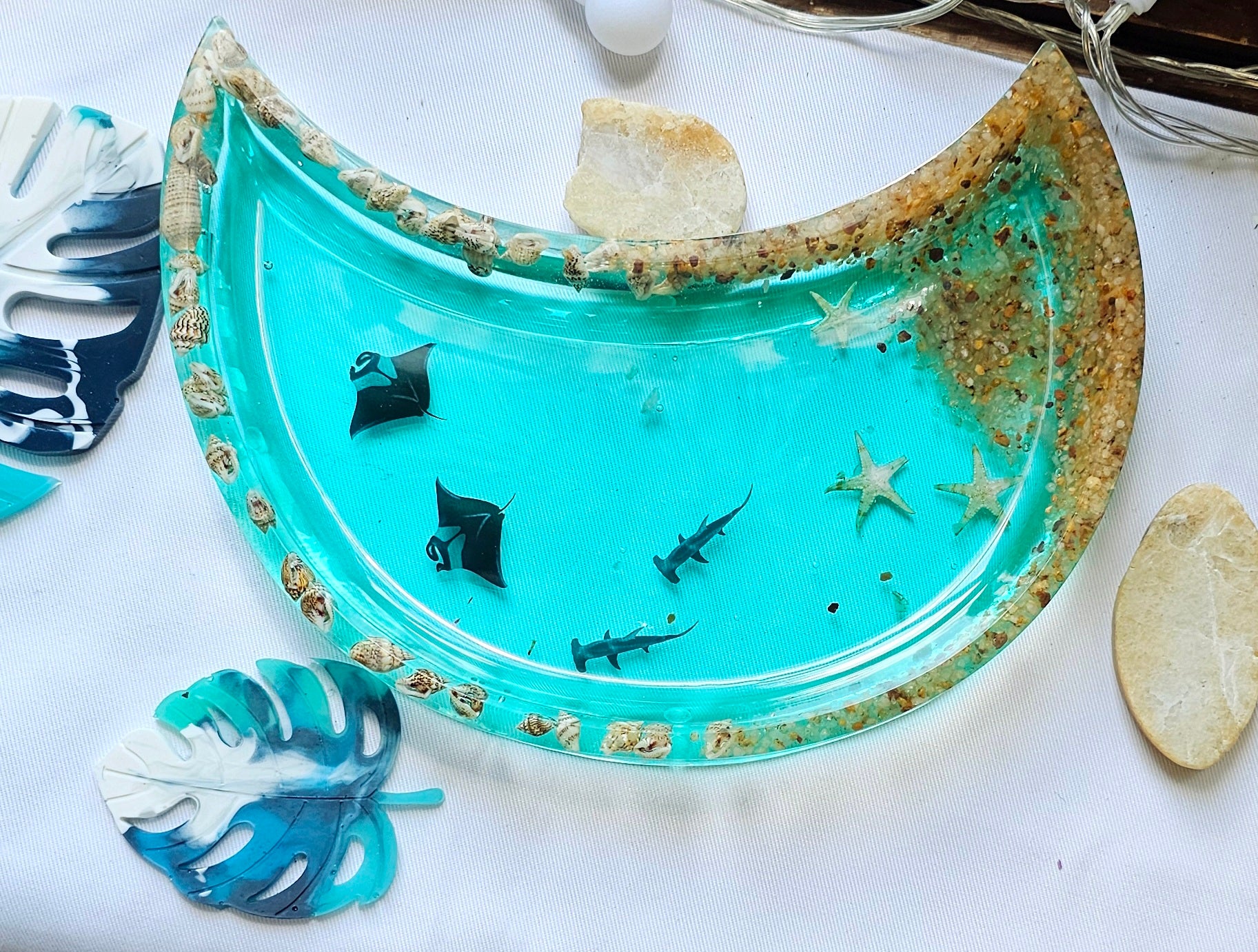 Crafted with resin, these Moon Trays feature intricate designs of delicate flowers, making them both functional and beautiful. The durable material ensures long-lasting use, while the unique design adds a touch of elegance to any space. Perfect for serving or organizing small items, these trays are a must-have for any home.