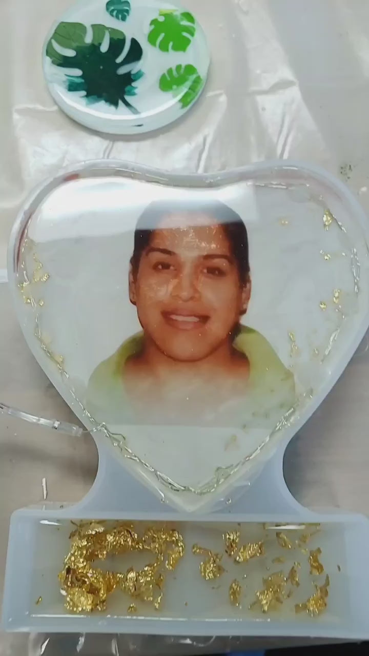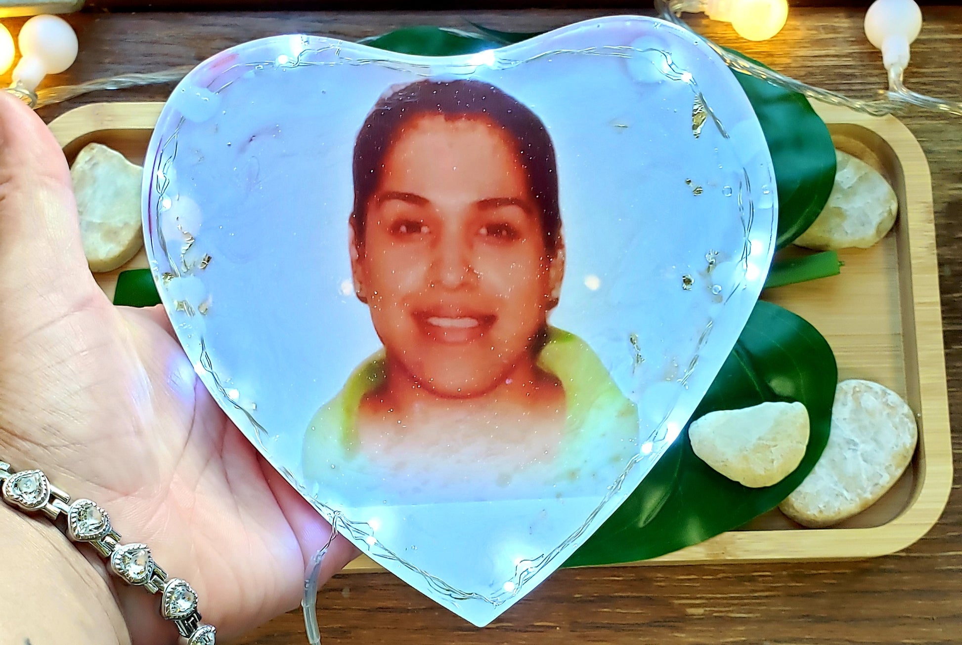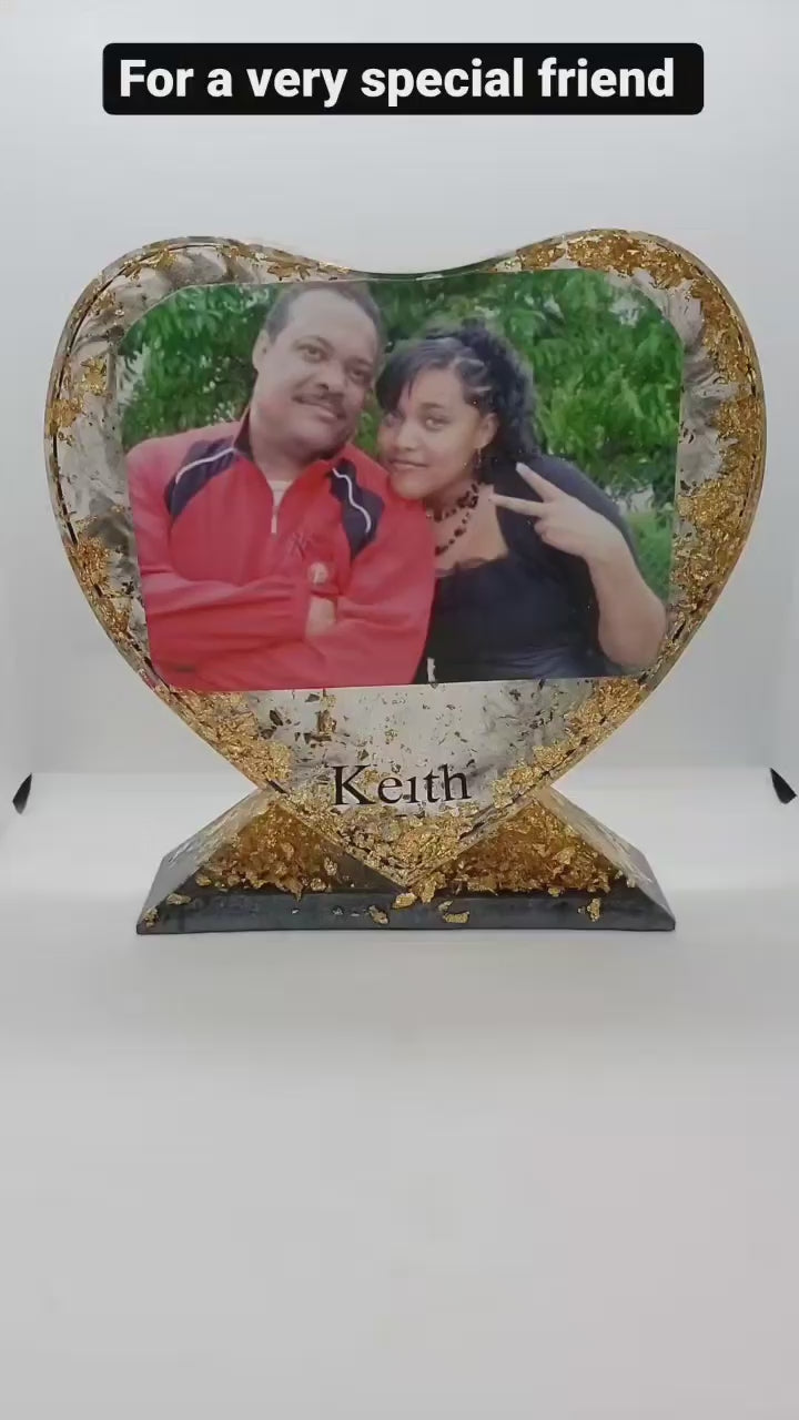 This personalized heart shaped photo frame is uniquely handmade from resin and ideal for a special memory or gift. Small imperfections may occur due to the nature of the material. Stand included. Request a specific color for a custom look. Each frame is made to order, so order on time for best results. Clean with a damp cloth. Avoid extended exposure to direct sunlight.