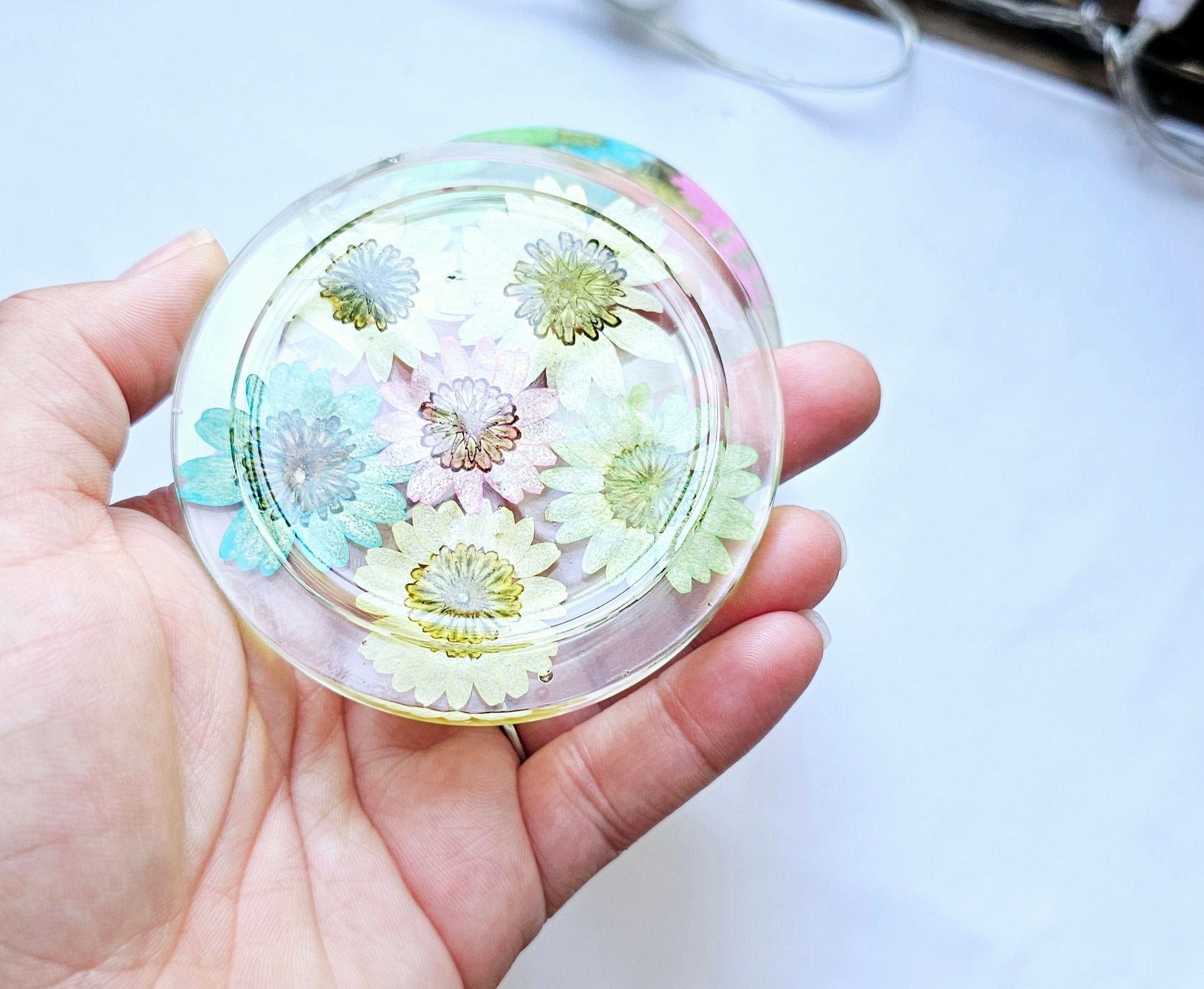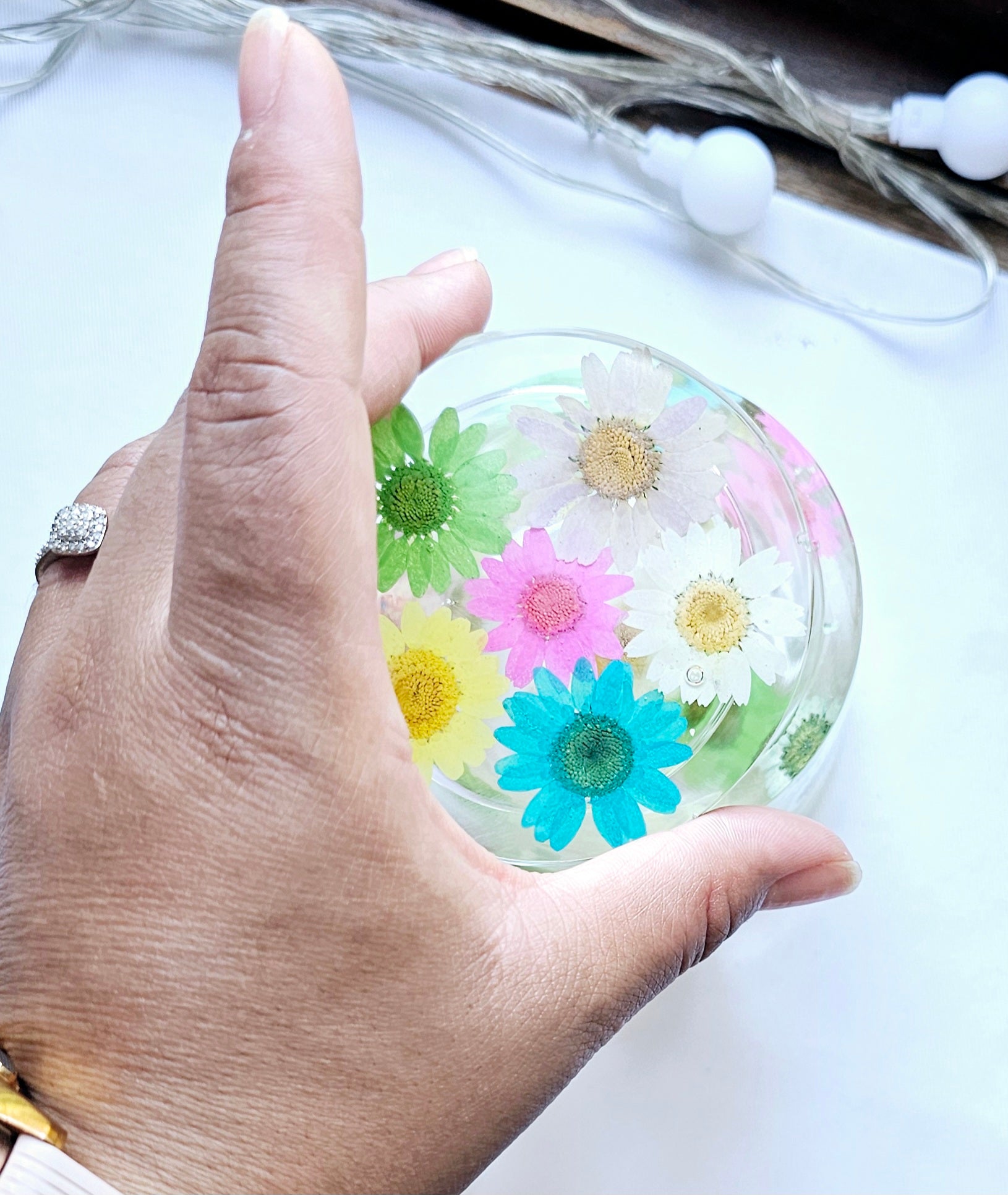 Elevate your home decor with our handcrafted Resin trinket jar. Made with high-quality resin and mica powder, each jar exudes charm and attention to detail. Measuring 3.5 inches wide and 3.0 inches tall, it is the perfect statement piece. Add a touch of sophistication to your space with our stunning mushroom jar.